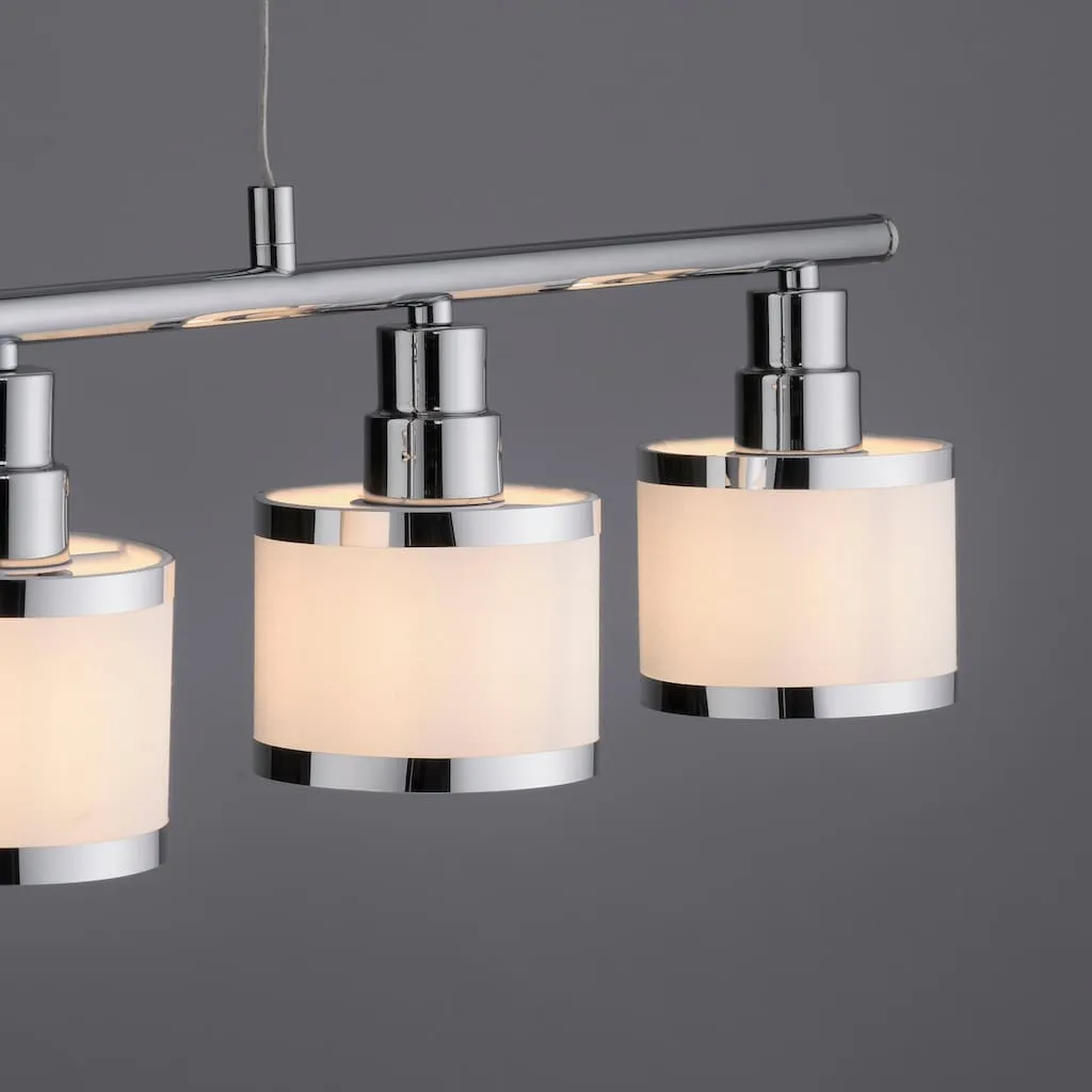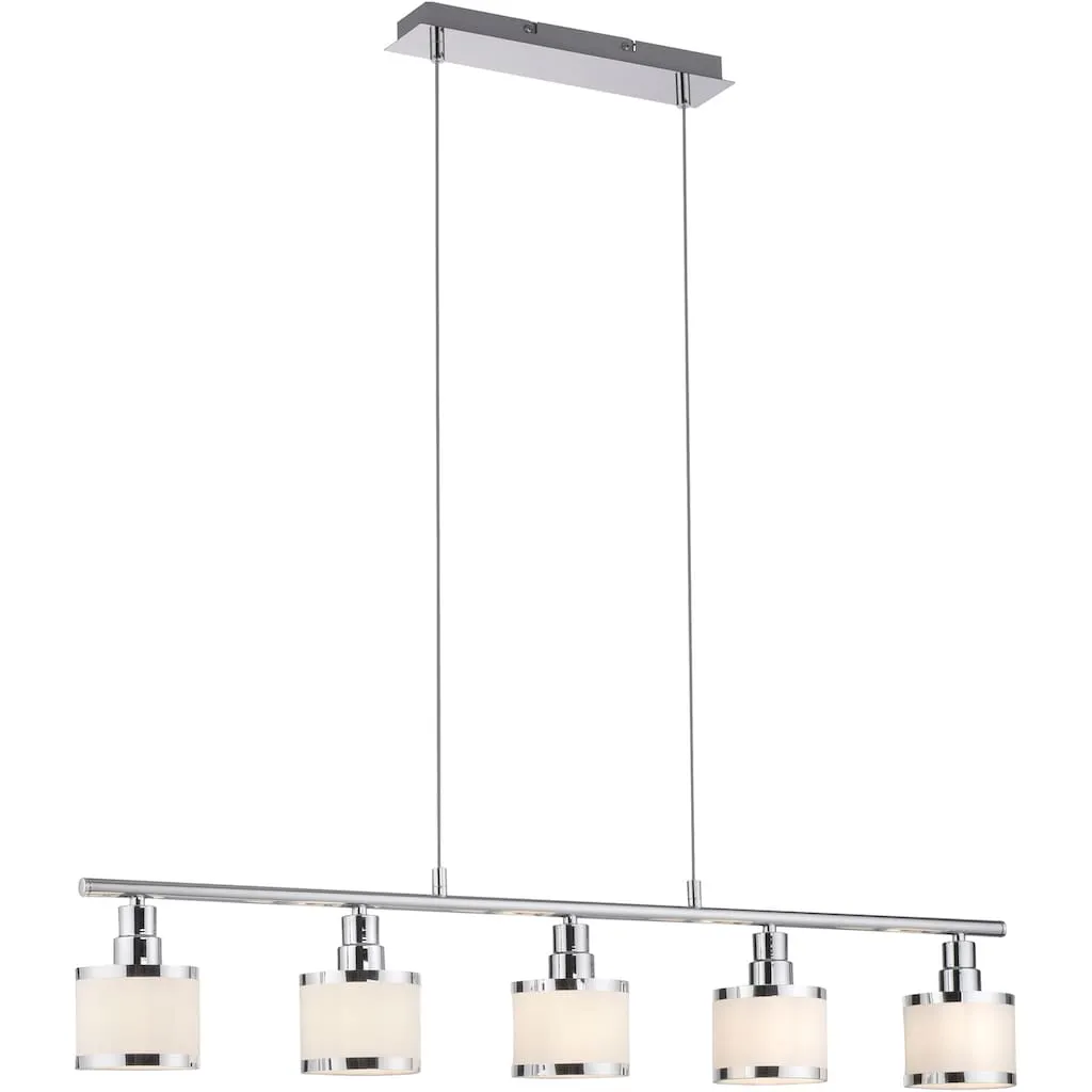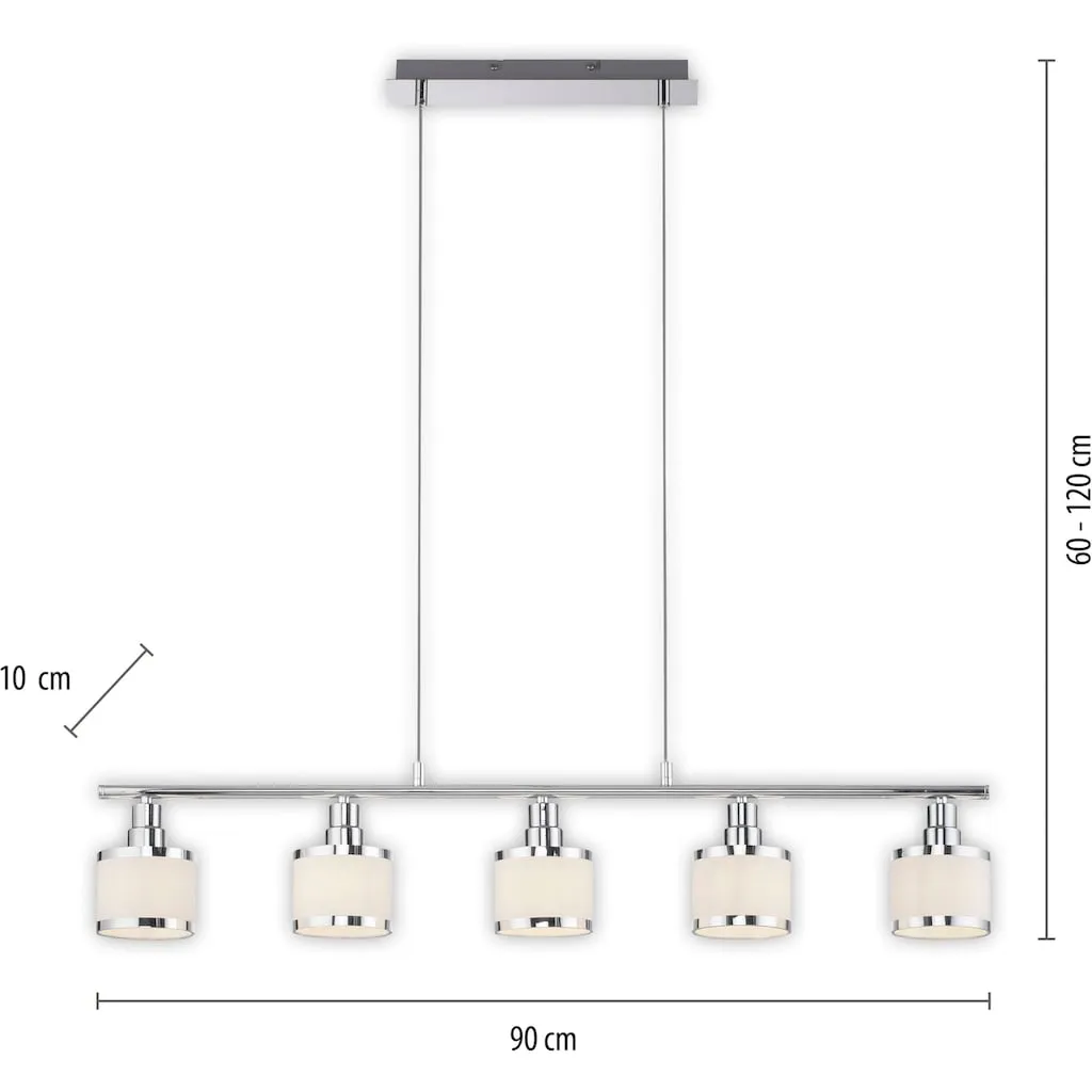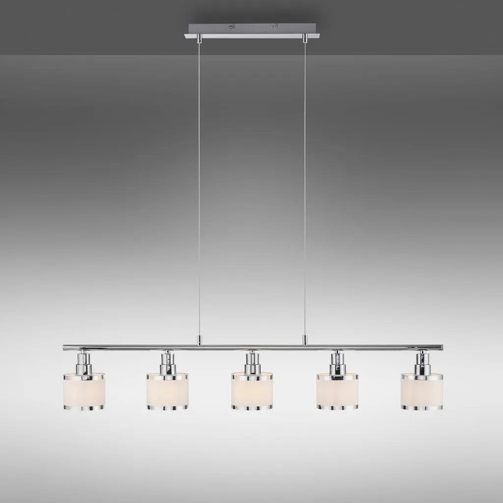 Подвесной светильник ACCOR эффектно представлен с глянцевой хромированной поверхностью и пятью абажурами. Лампы в комплект не входят. ACCOR может быть оснащен пятью лампочками E14 мощностью до 25 ватт каждая. Идеально подходят светодиодные лампы. Подвесной светильник гарантированно быстро займет подходящее место над вашим обеденным столом и освещает вашу еду в идеальном свете.
