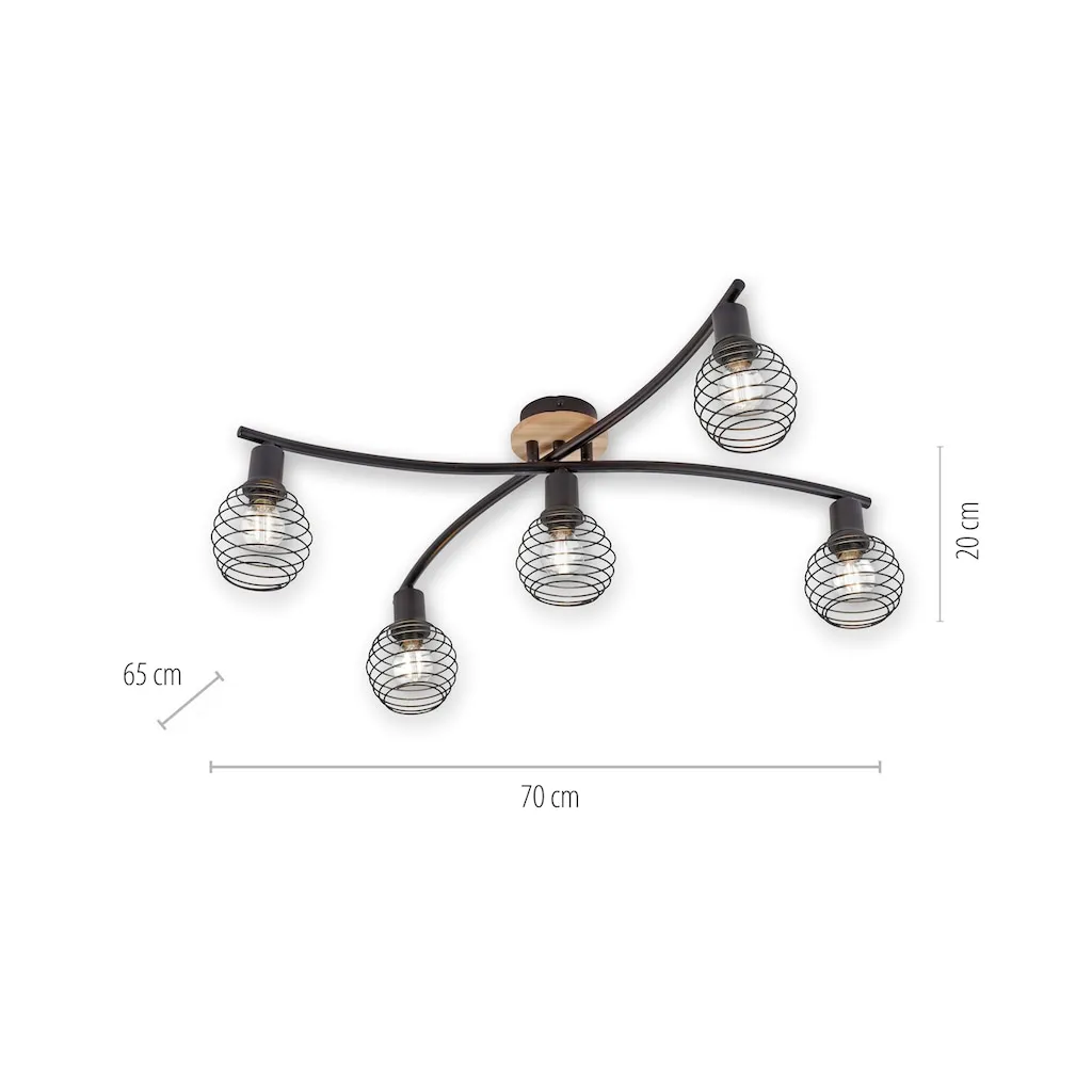 Промышленный стиль, поворотный, эксклюзивно 5 x E14 макс. 40 Вт, подходит для светодиодных ламп, комбинация дерева и железа