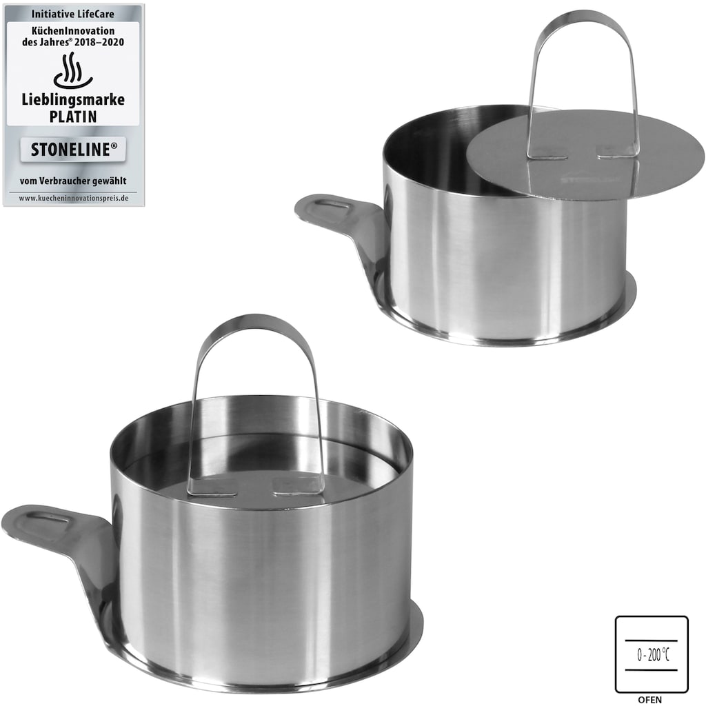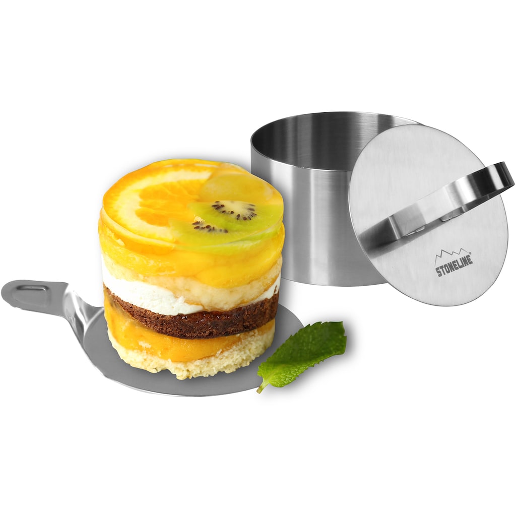 STONELINE - Оригинал! С этим 8-частным набором вы легко придадите вашим кулинарным творениям идеальную форму! От малиновых тарталеток до мясного тартара - с этими кулинарными кольцами ваши приготовленные деликатесы станут настоящим удовольствием. Простое использование для различных блюд Идеально подходит для порционирования закусок и гарниров Легко чистится. Этот 8-частный набор состоит из: 6 колец, диаметр ок. 8 см, высота ок. 5 см 1 подъемник, диаметр ок. 8,1 см 1 штамп, диаметр ок. 7,5 см.