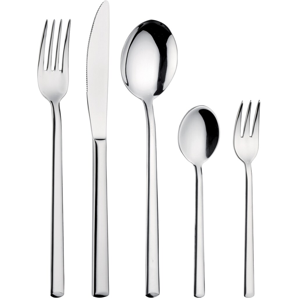 Столовый набор 'Synthesis', 30 предметов, из нержавеющей стали 18/10, толщина 3,0 мм, высокополированная поверхность, современная продолговатая, угловатая форма, Сделано в Италии
