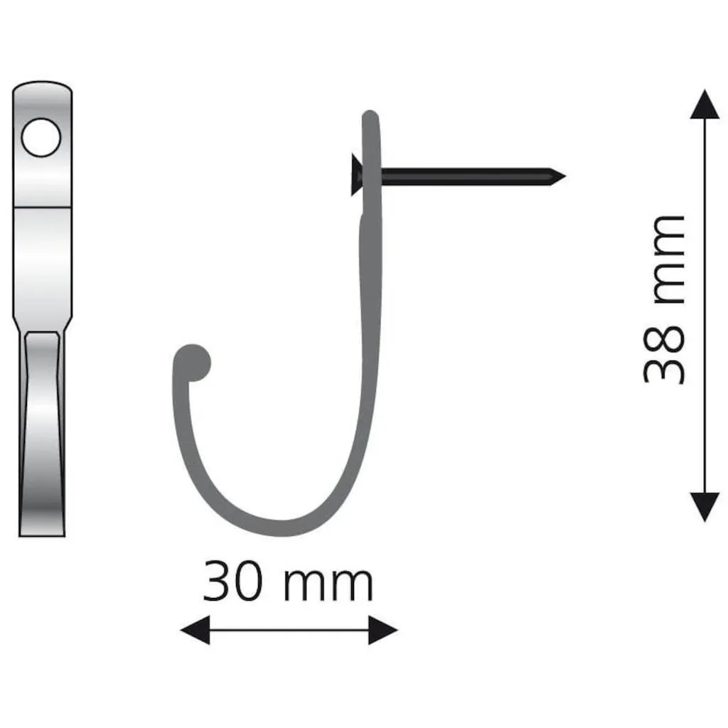 Этот декоративный крючок для штор универсален и может быть использован в интерьере. Он фиксирует оконные ткани и служит для подвешивания различных декоративных предметов. Изготовлен из металла, крепится небольшим гвоздем и имеет зазор между стеной и стеной около 30 мм. Материал: 100% металл.