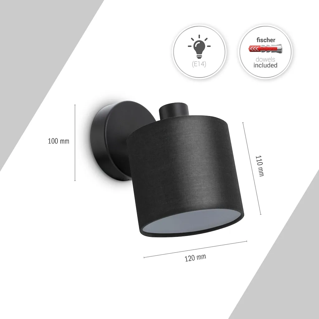 ОПТИКА - Этот классический настенный светильник представлен в ненавязчивых цветовых вариантах черного, серого и белого и впечатляет своей четкой линией и модным дизайном. СТИЛЬ - Минималистичный, современный и элегантный, этот элемент декора станет настоящим украшением любого интерьера. МАТЕРИАЛ - Светильник изготовлен из прочной стали и оснащен качественным тканевым абажуром из хлопка и полиэстера. ДЕТАЛИ - Одноламповый, с патроном E14, вы можете использовать любую лампочку E14 мощностью до 15 Вт.