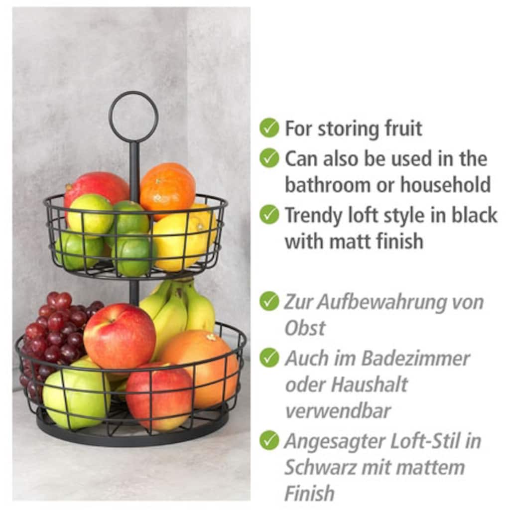 Этажерка Multi-Korb-Etagère современная корзина для овощей и фруктов с ручкой, двухъярусная фруктовая корзина Wenko, черный