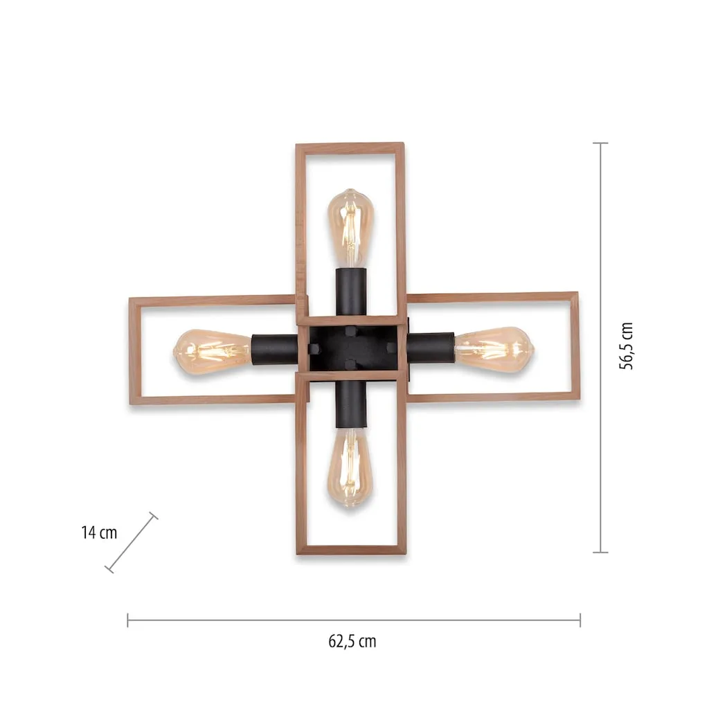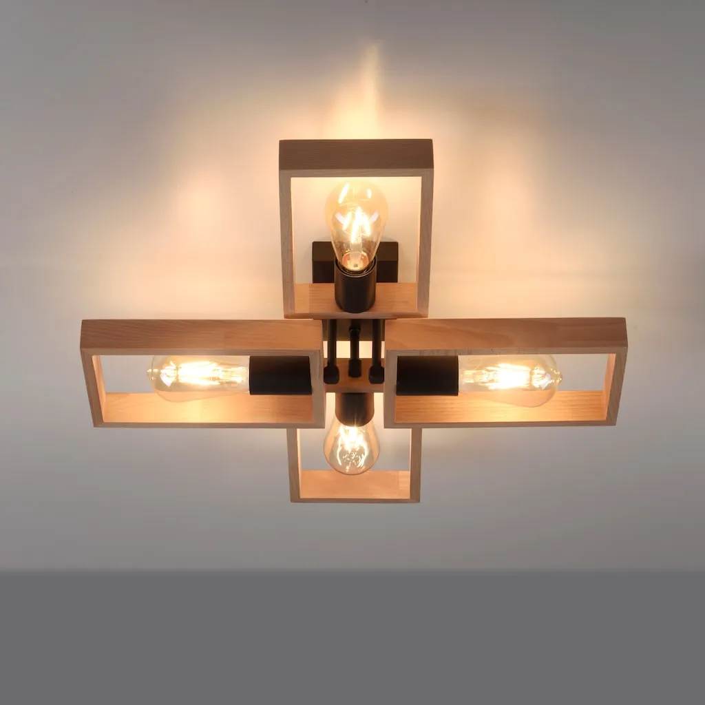 Потолочная лампа в рустикальном и одновременно современном стиле, четыре прямоугольные рамки из акации, подходит для ламп E27 макс. 60 Вт, наша рекомендация: используйте лампы с нитями накала для особого эффекта, доставка без ламп.