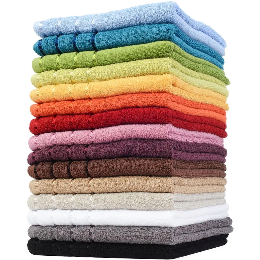 Современное махровое полотенце из самой тонкой хлопковой ткани с тройными полосками из вискозы на полотне и по краю. Размер полотенца составляет 50x100 см, оно доступно в 15 различных однотонных цветах. Таким образом, каждый сможет выбрать подходящий цвет. Полотенце изготовлено из 100% хлопка, его можно стирать при 60°C и оно также подходит для сушки в сушильной машине.