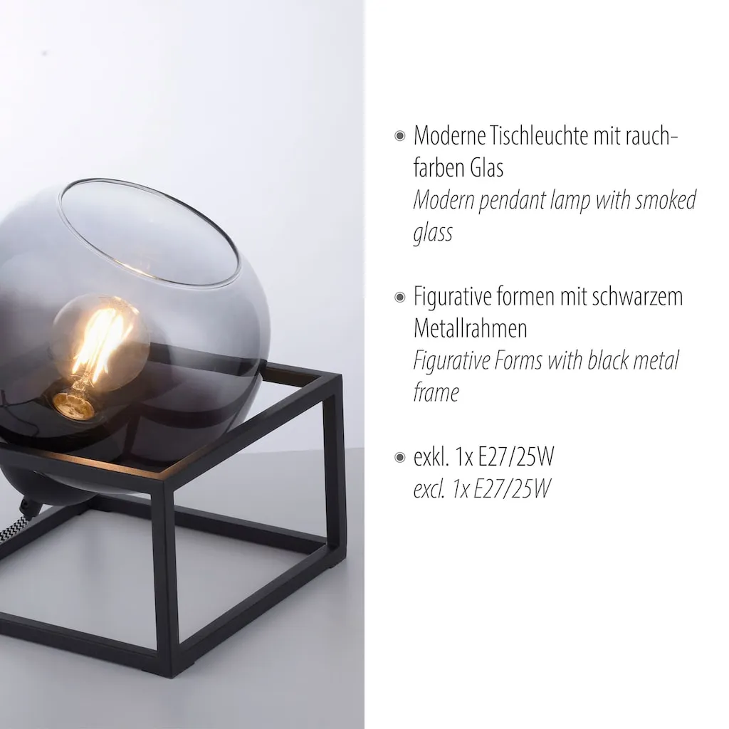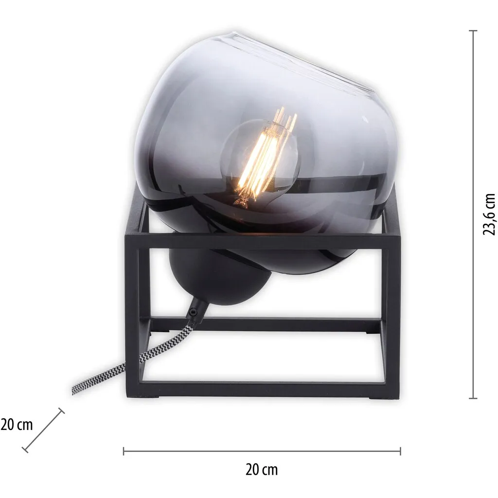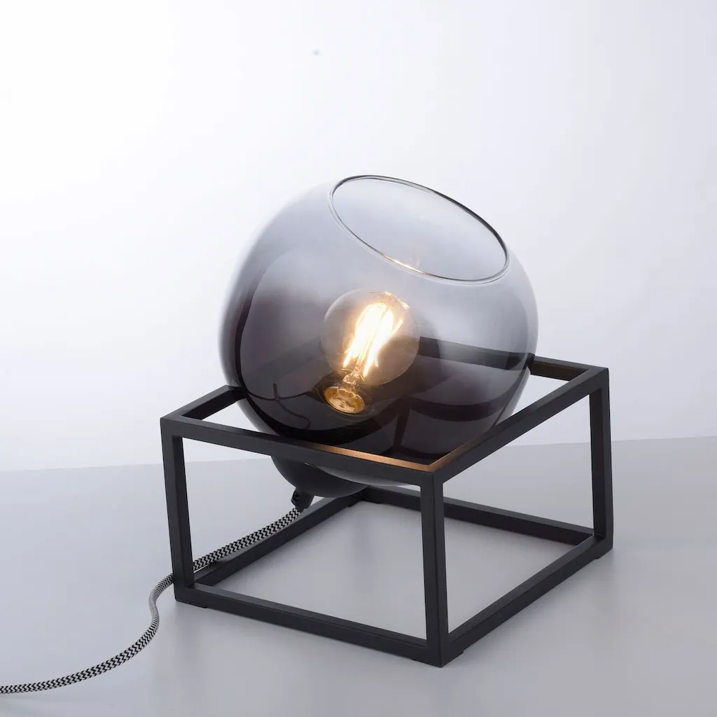 Современное дымчатое стекло, шнуровой выключатель, эксклюзивная 1x E27 макс. 25 Вт лампа, подходит для светодиодных ламп, настольная лампа LeuchtenDirekt ZEA, 1x E27 макс. 25 Вт, внутренняя лампа, IP20, дымчатое стекло, поворотная