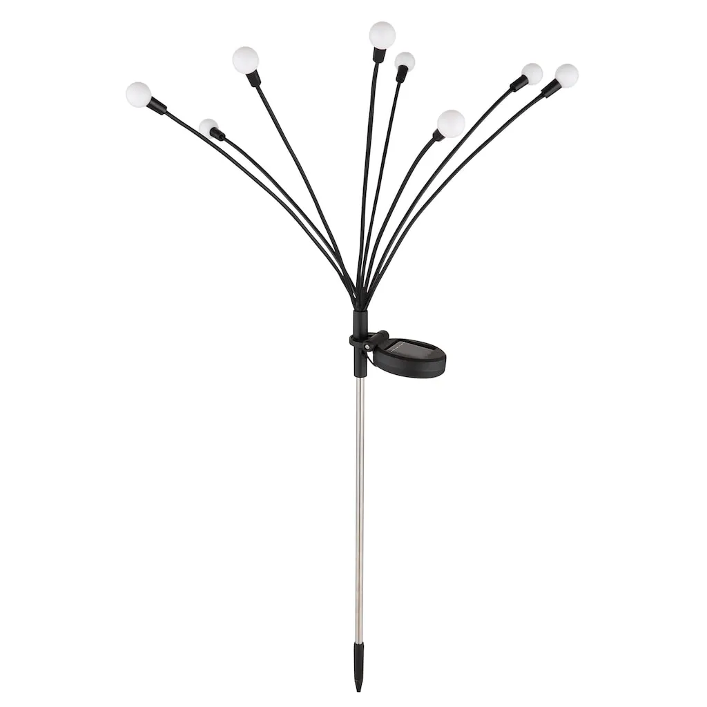 Солнечный светильник из нержавеющей стали, матовый черный пластик, опаловый пластик, скользящий выключатель, подвижный, аккумулятор в комплекте AAA 300 мАч 1,2 В, IP44, ДxШxВ: 200x120x700 мм, в комплекте 8x LED 0,06 Вт 3,2 В, 3000K