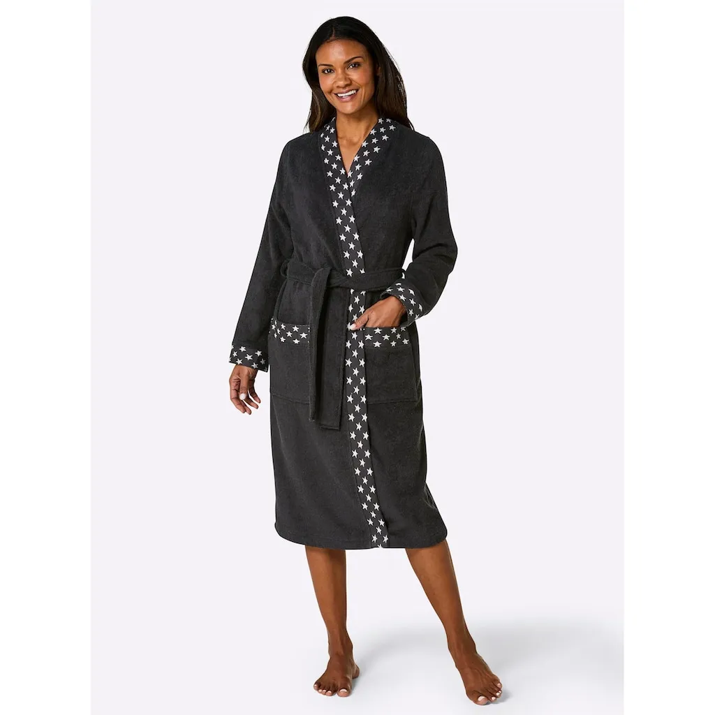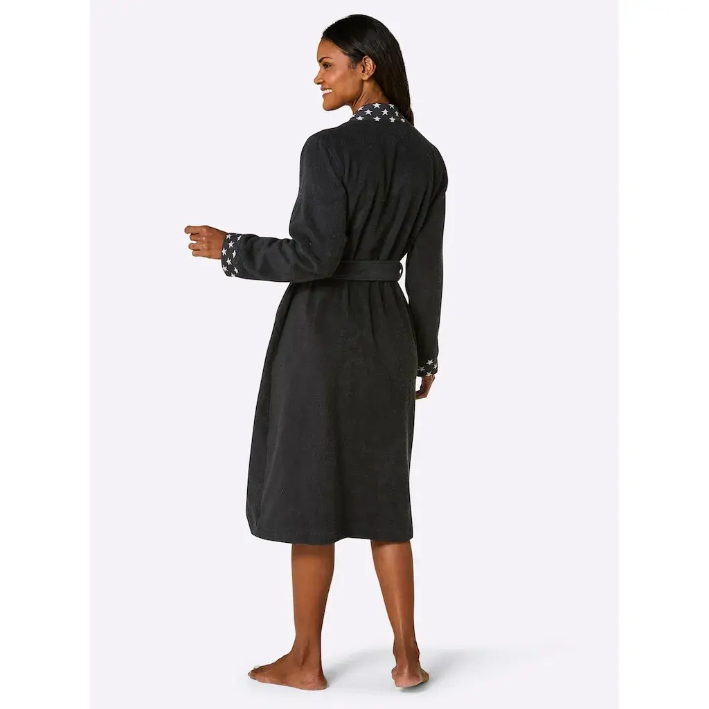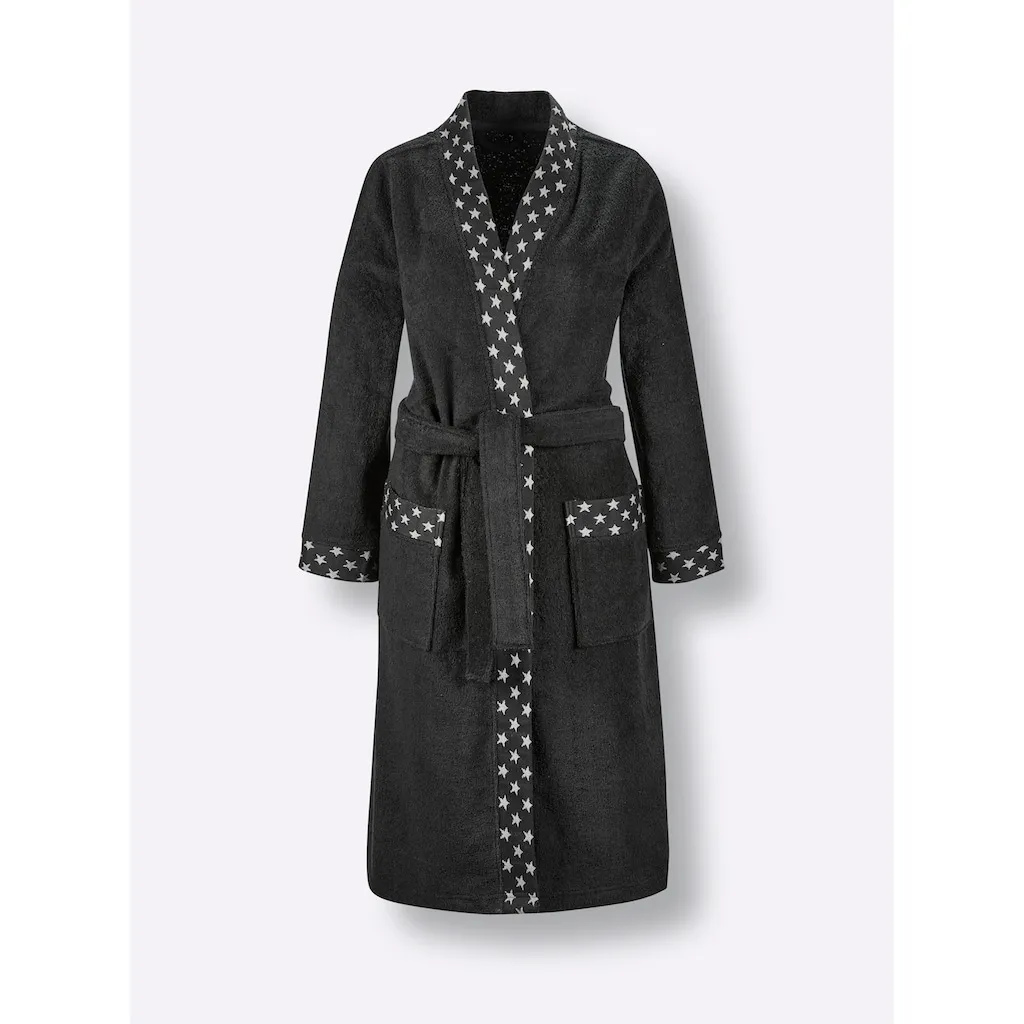 На вашем идеальном дне СПА эта звезда не должна отсутствовать: халат от feel good украшен модным звездным узором на кантах, на манжетах рукавов и на обоих карманах. Удобный кимоно с петлями для пояса и поясным ремнем. Поддерживает инициативу Cotton made in Africa. 100% хлопок. Машинная стирка.