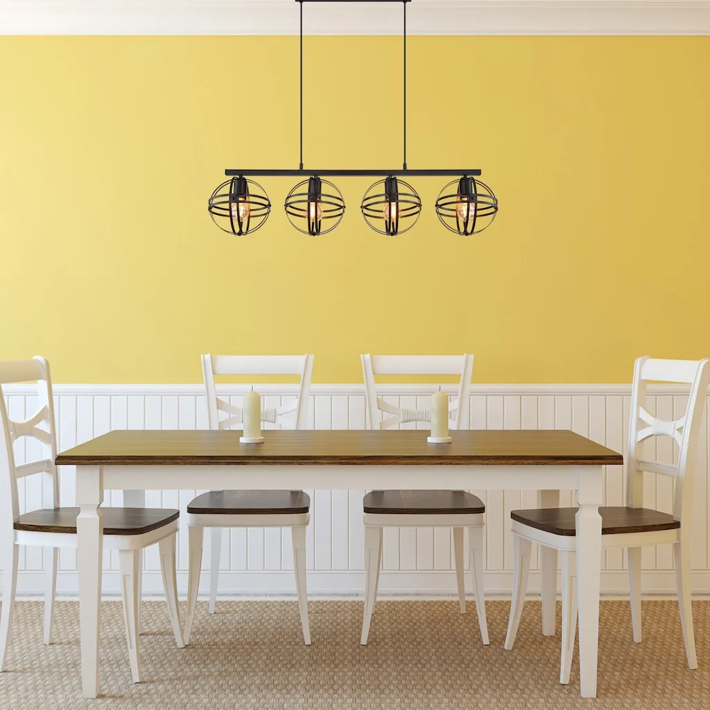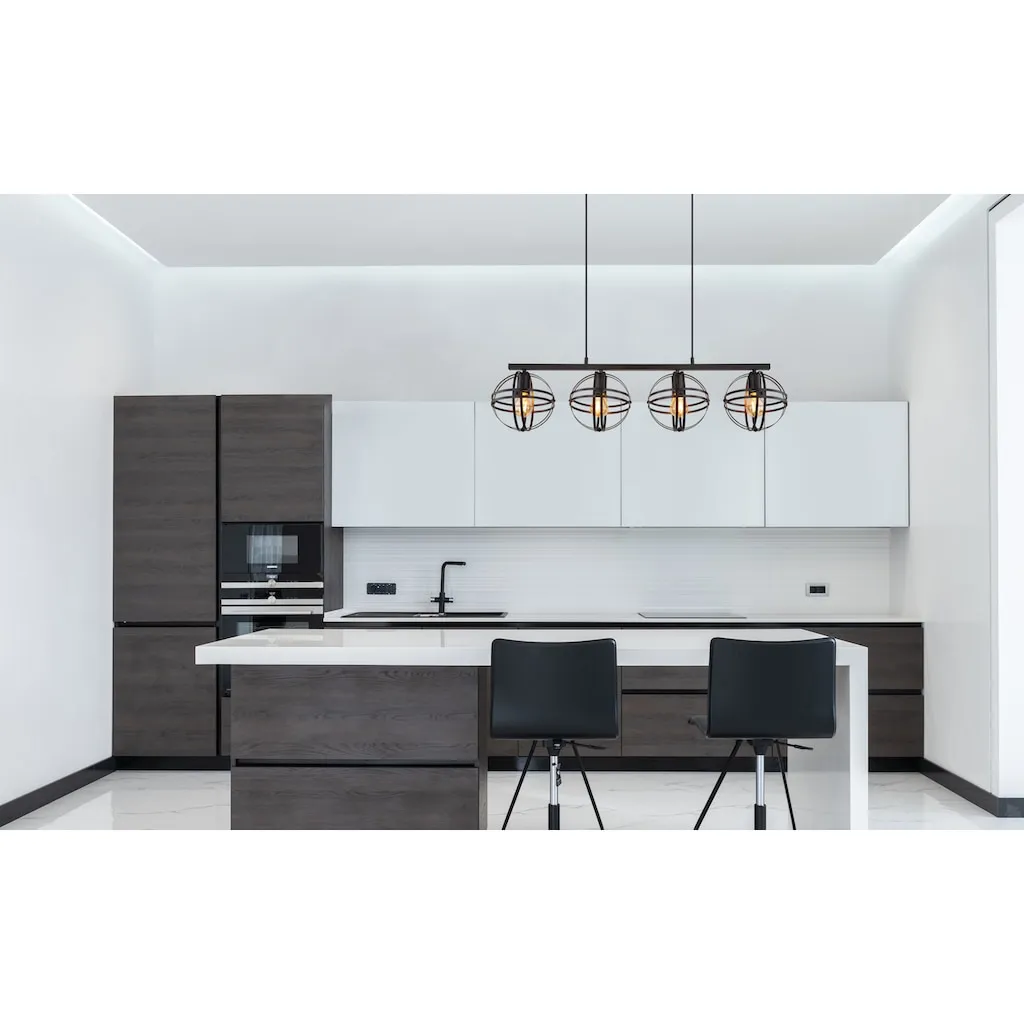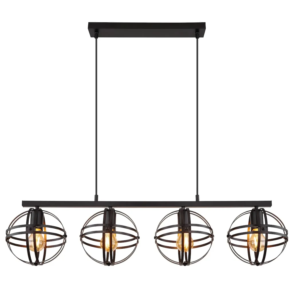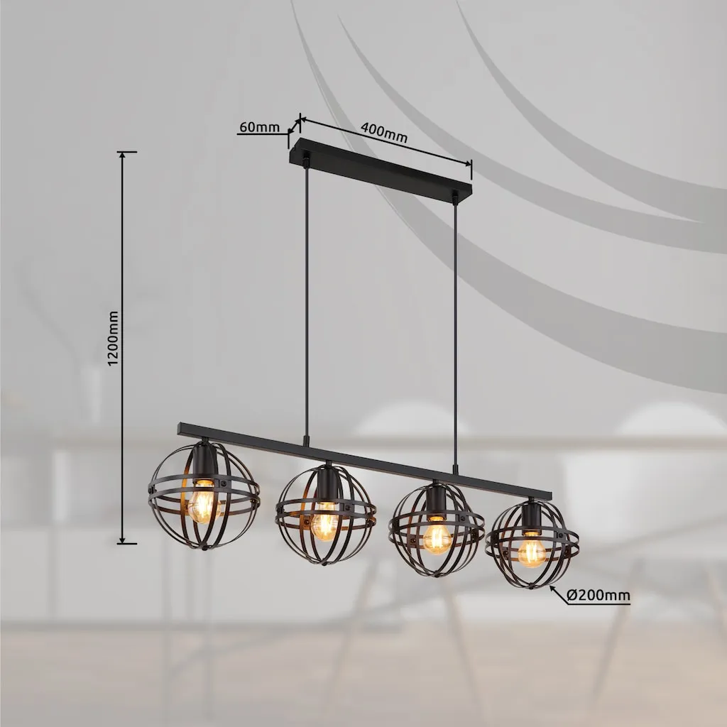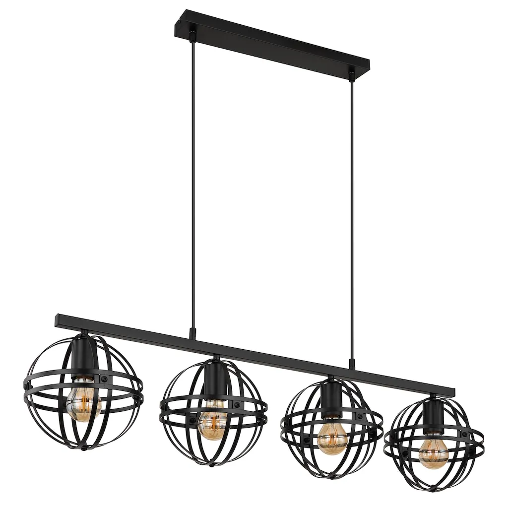 Этот подвесной светильник серии TAMARA выполнен из металла с матовой черной отделкой и подвешивается с помощью черного кабеля из ПВХ. Высоту подвесного светильника можно регулировать по необходимости. Абажуры светильника поставляются в разобранном виде. Размеры подвесного светильника составляют ДxШxВ: 950x200x1200 мм. Необходимые лампы в комплект не входят и должны быть приобретены отдельно. Всего требуется четыре лампы E27 мощностью до 60 Вт при 230 В.