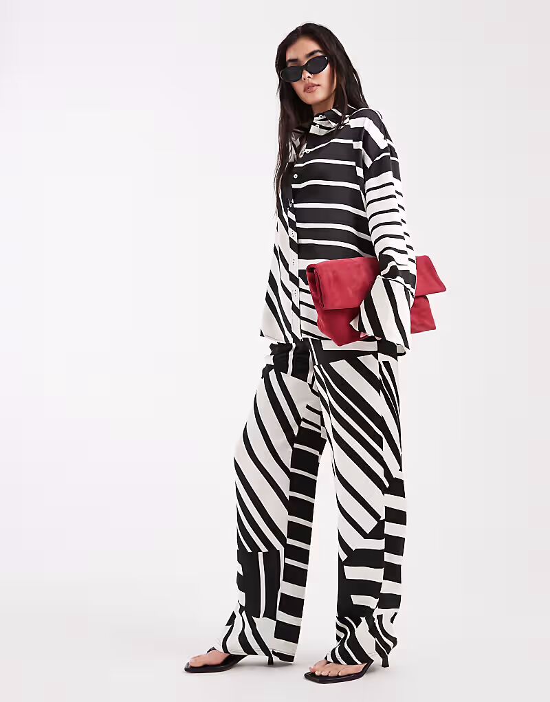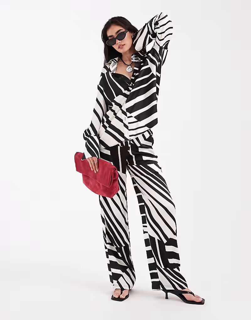 Широкие брюки из сатина с черно-белым принтом 4Th & Reckless 3 729₽