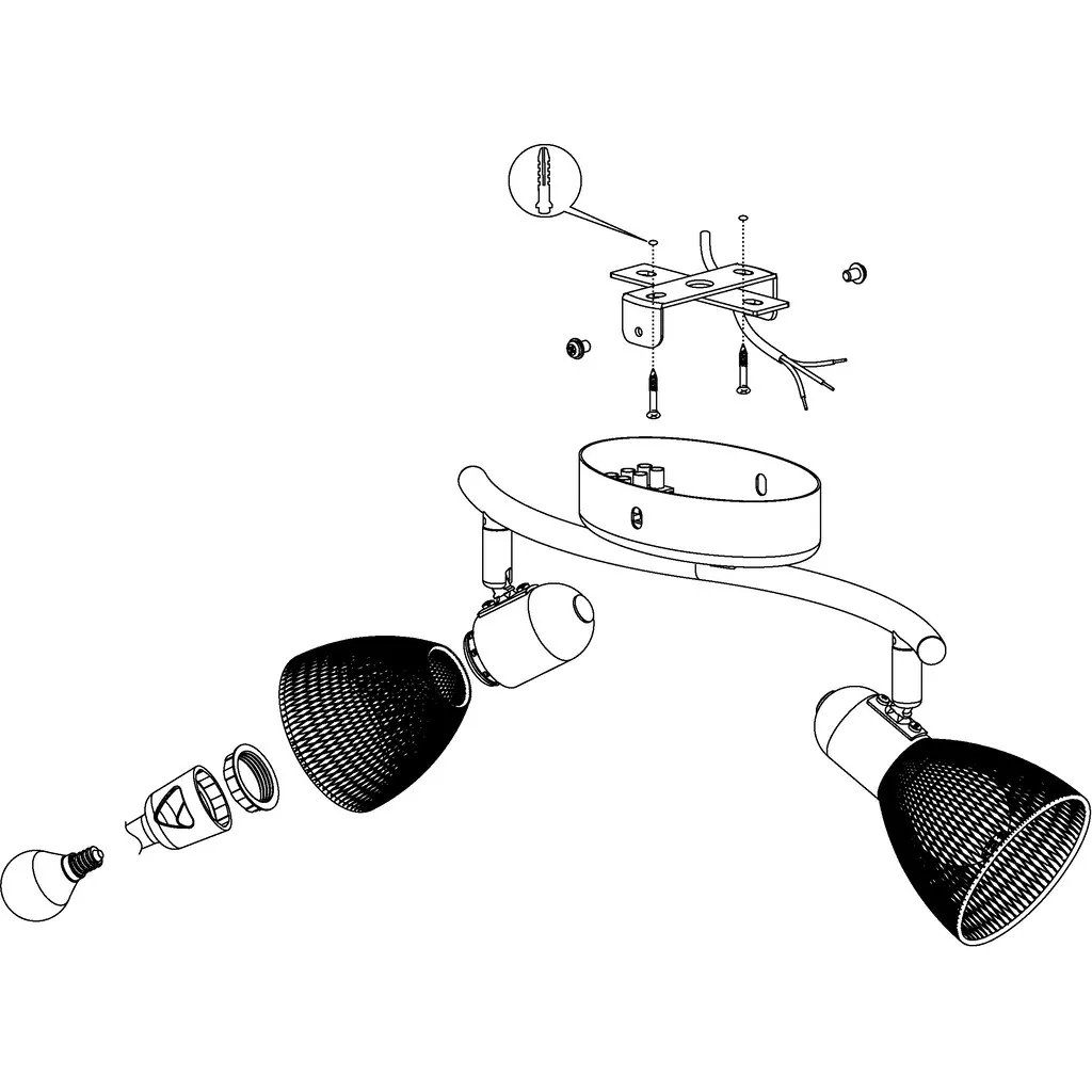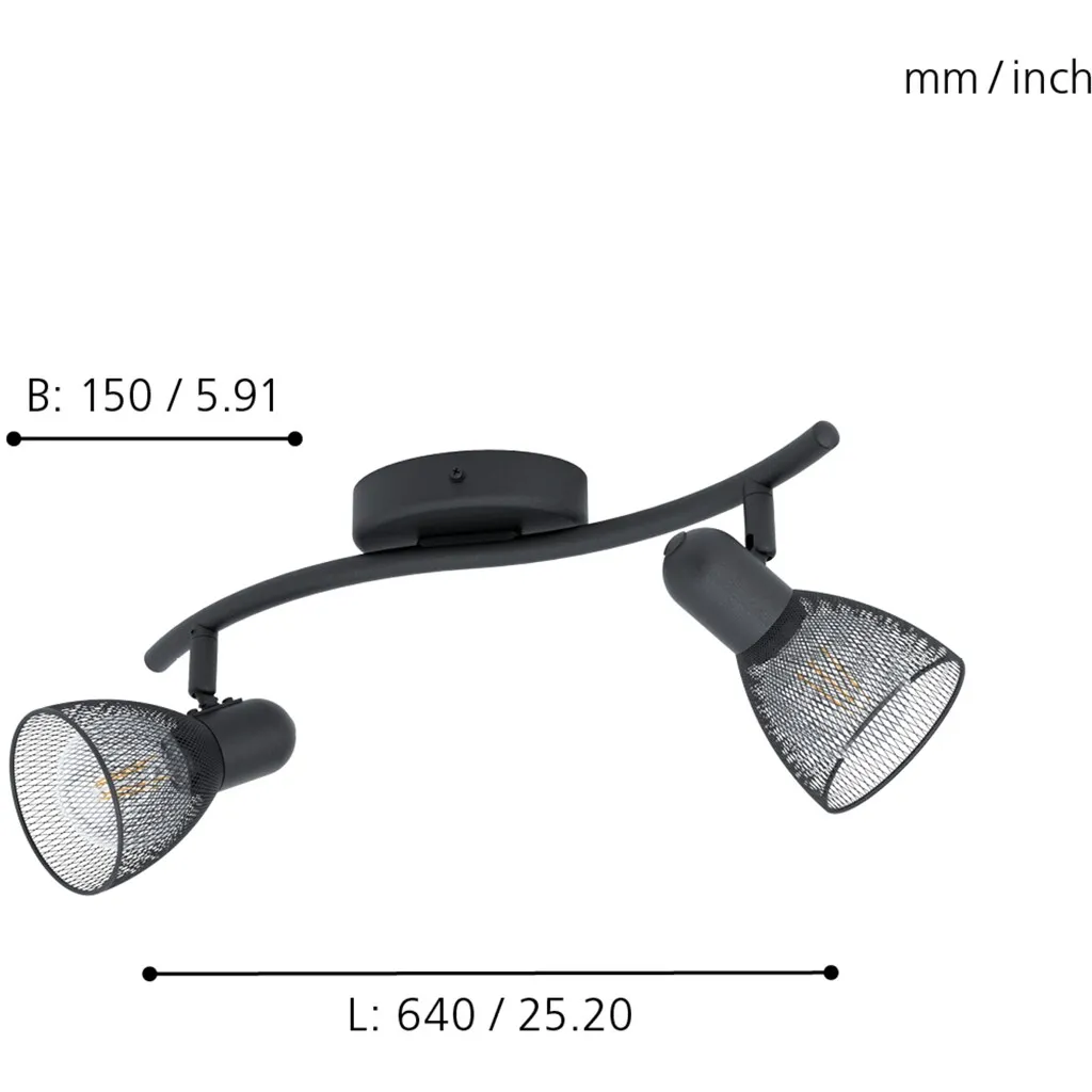 Те, кто ищет модные светильники для жилого помещения, попадут в точку с двухголовой моделью «Carovigno» от Eglo. Черная сталь с сетчатым узором подчеркивает дизайн абажуров. Необходимо два светильника E14. В комплект не входят.