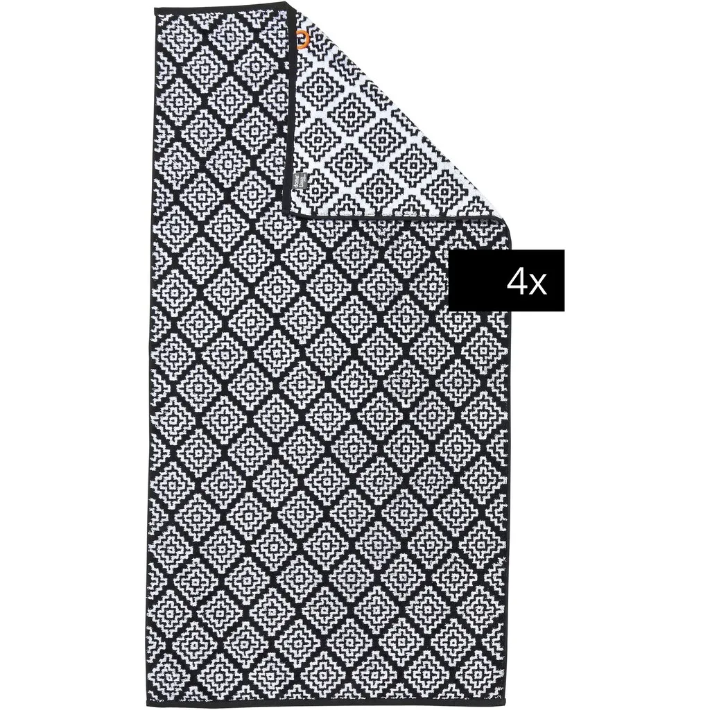 Наименование товара Количество деталей: 4 шт. Цвет Название цвета: Черный Внешний вид/Стиль Внешний вид: с узором Логотип: тканый Размеры Ширина: 70 см Длина: 140 см Материал Тип материала: жаккардовое вафельное полотенце Состав материала: Верхний Материал: 100% хлопок Плотность: 500 г/м² Окраска: окрашивание нитью Материал: хлопок Указания Инструкции по уходу: машинная стирка при 60°C, утюжить при низкой температуре, химическая чистка запрещена, подходит для сушки в сушильной машине Цветовые указания: Имейте в виду, что цвета на вашем мониторе могут отличаться от оригинальных оттенков. Предупреждения: чтобы избежать повреждения продукта, острые, колющие или грубые предметы должны быть подальше от текстиля; Держите подальше от огня и сигарет! Легковоспламеняющийся продукт; Упаковочный Материал: хранить в недоступном для маленьких детей и домашних животных месте. Опасность удушья; Следуйте инструкциям по уходу, указанным на продукте Общие сведения Выполнение: Черный Детали продукта Информация о наборе: 4 банных полотенца Тип полотенца: банное полотенце Подвеска: шнур