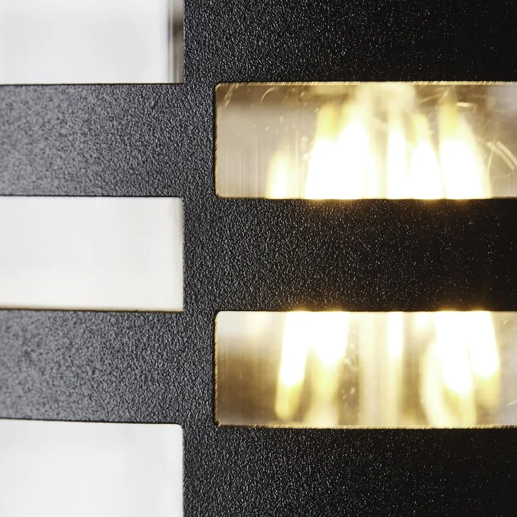 Степень защиты IP: 44 - защищено от брызг, Подходит для светодиодных ламп, Размеры: 31 x 16 x 13 см, Комплектация - 1x настенный светильник - ВxШxГ: 305 x 162 x 127 мм, Вес: 0,9 кг - Материал: нержавеющая сталь/пластик, Цвет: матовый черный