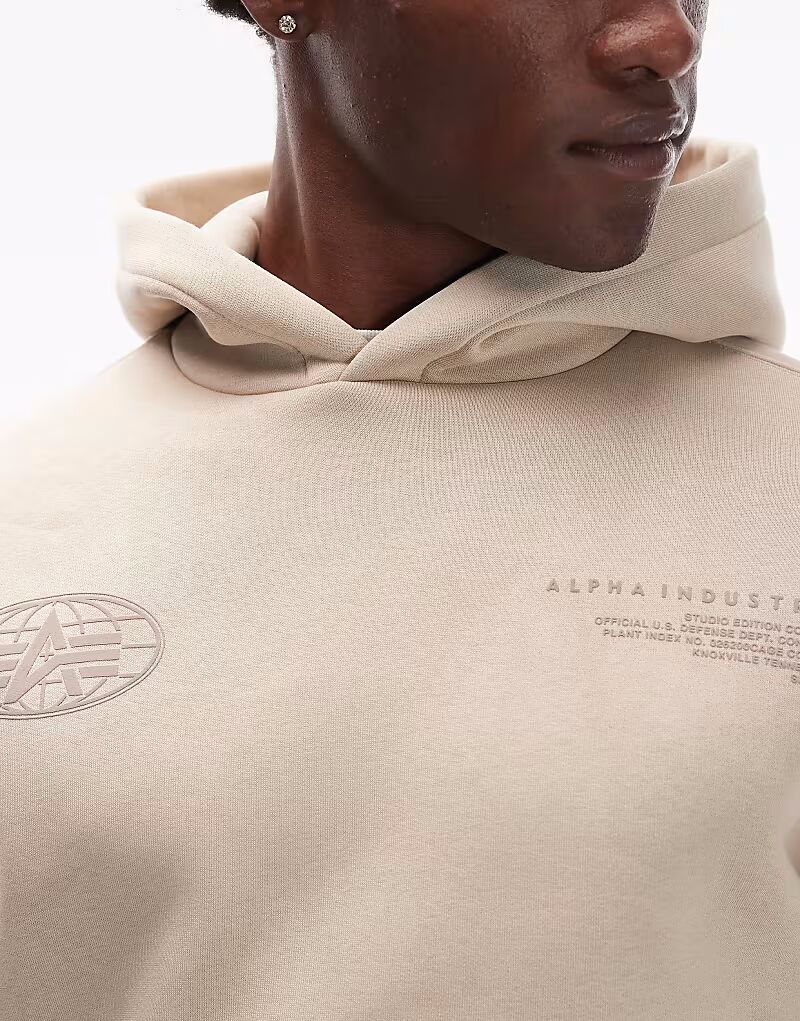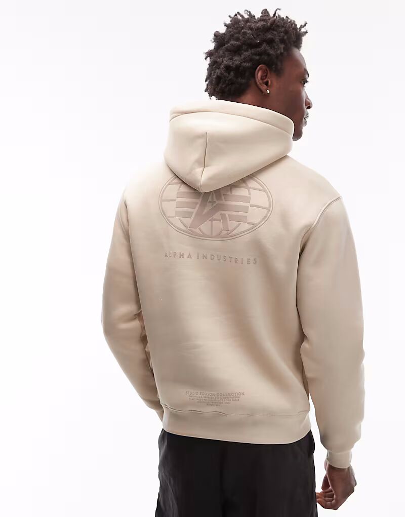 Толстовка с принтом логотипа в кремовом цвете Alpha Industries