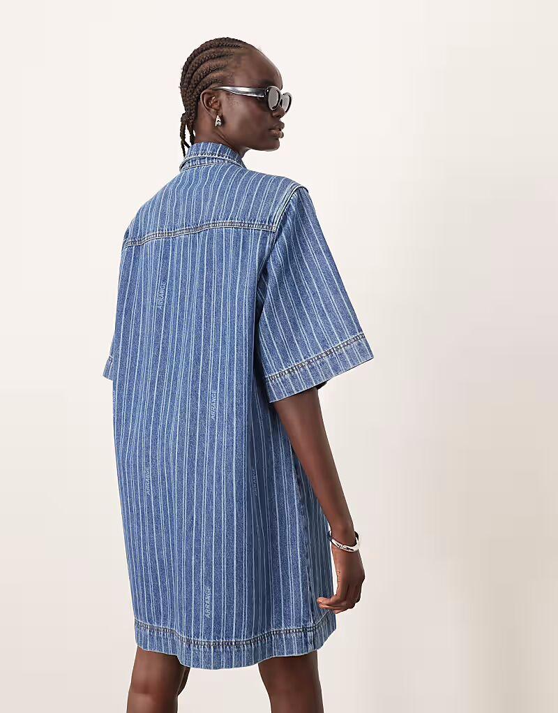 Платье-рубашка мини в полоску из денима Arrange, синий