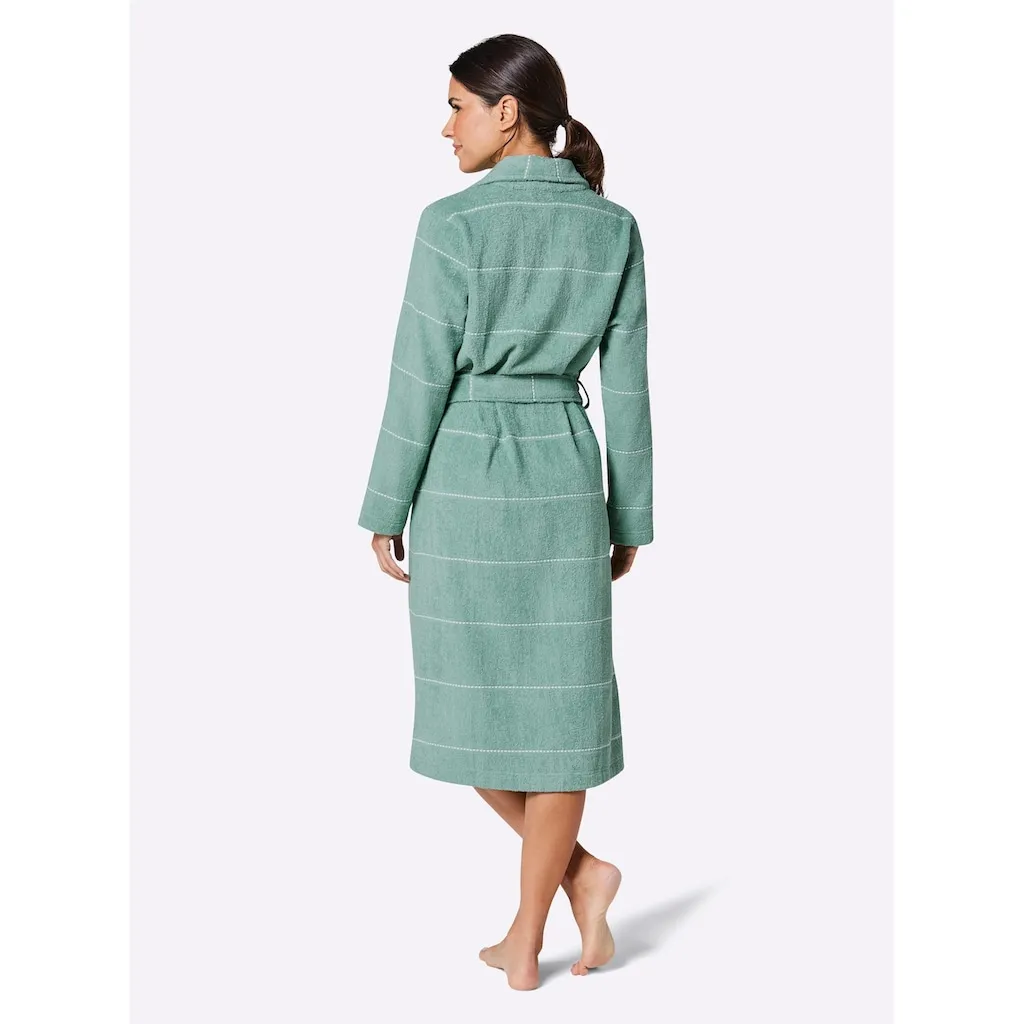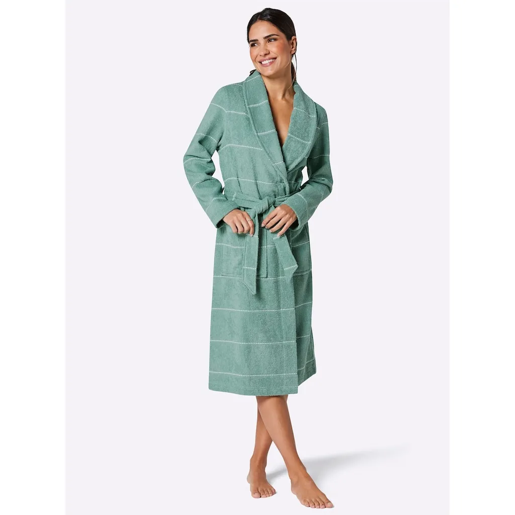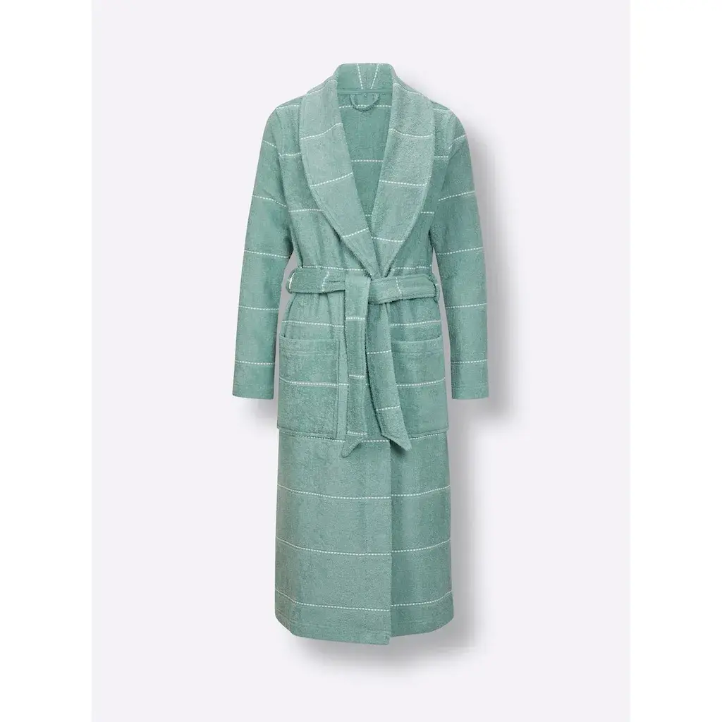 Марка качества feel good: халат из уютного вафельного полотна с качественно выполненными полосами. С приятным шалевым воротником, шлевками для пояса и поясным ремнем. Накладные карманы. 100% хлопок.