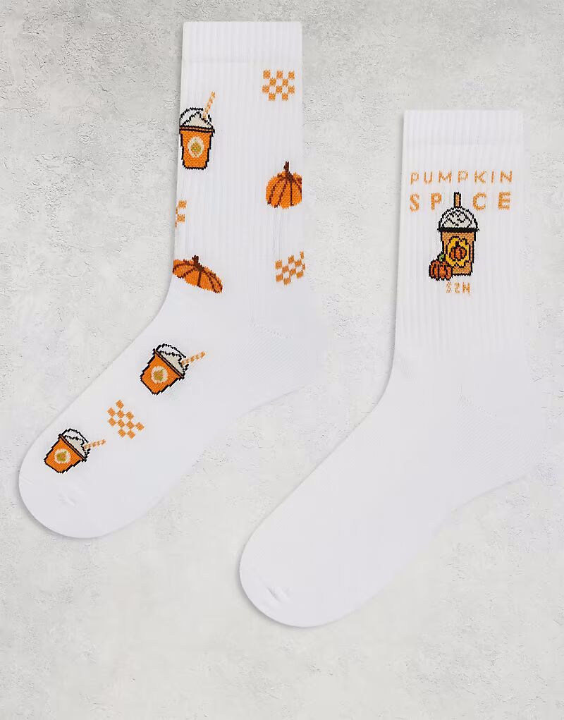 2 пары носков с принтом тыквы и специй, белые Asos Design