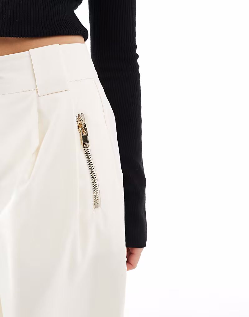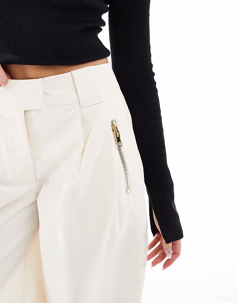 Брюки с молнией на арке брючин в цвете «кремовый» Asos Design