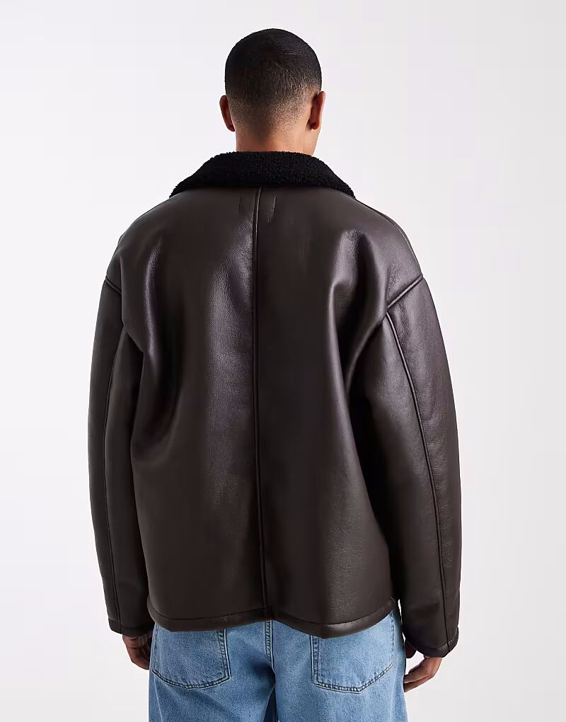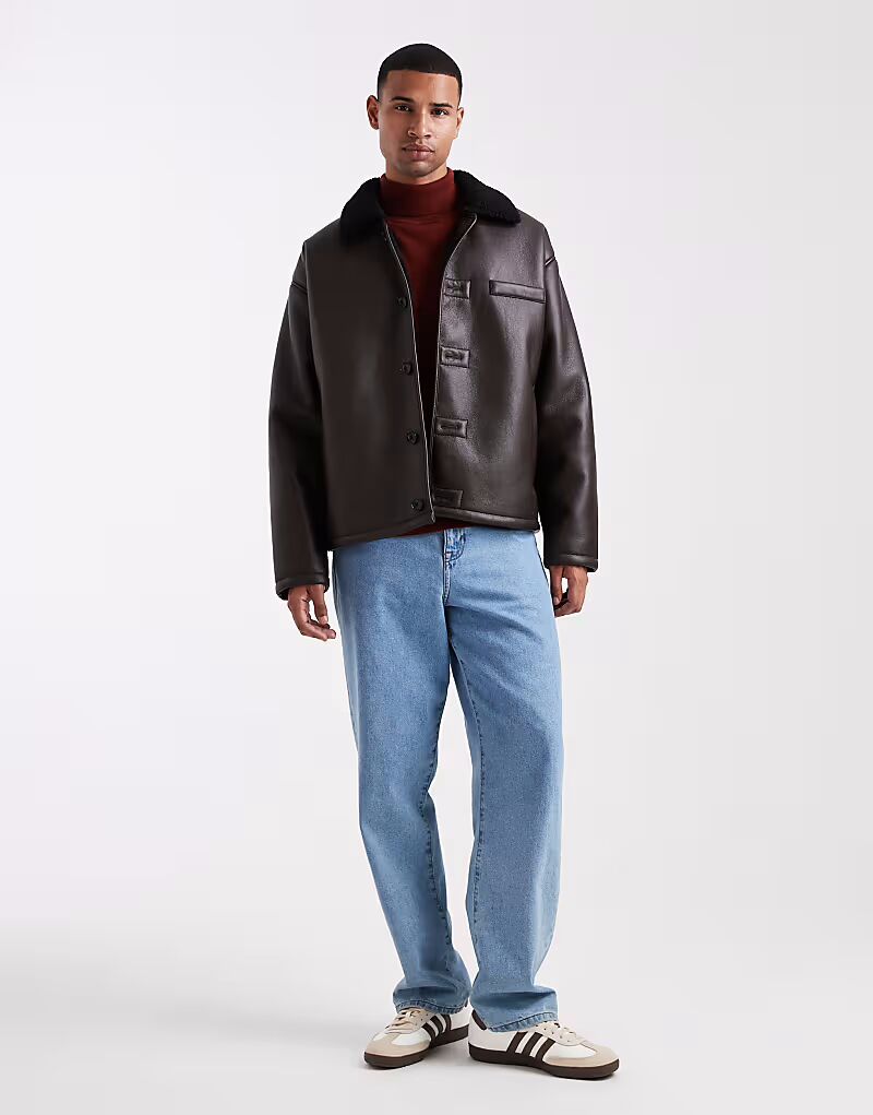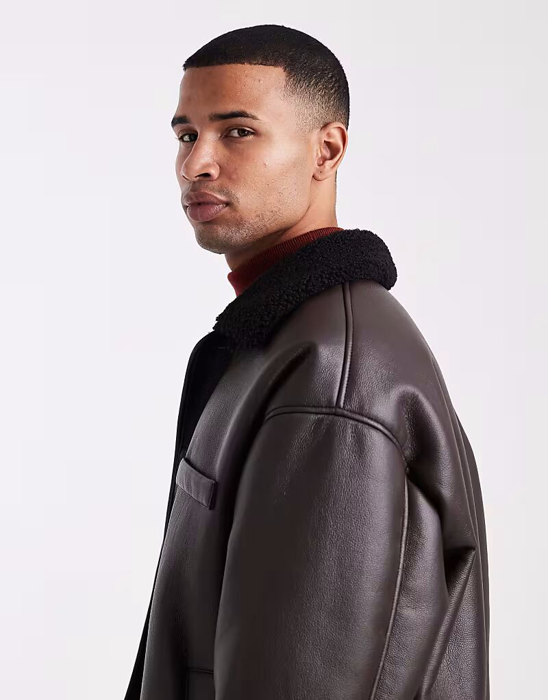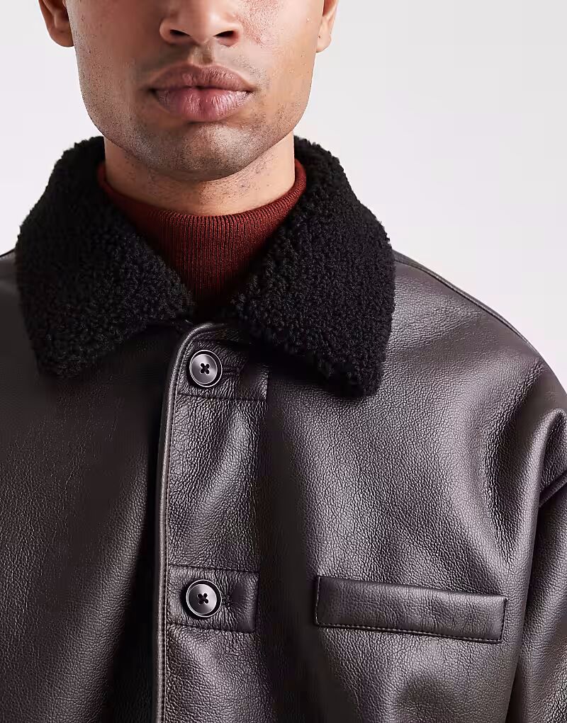 Куртка-авиатор с воротником-боргом коричневого цвета Asos Design