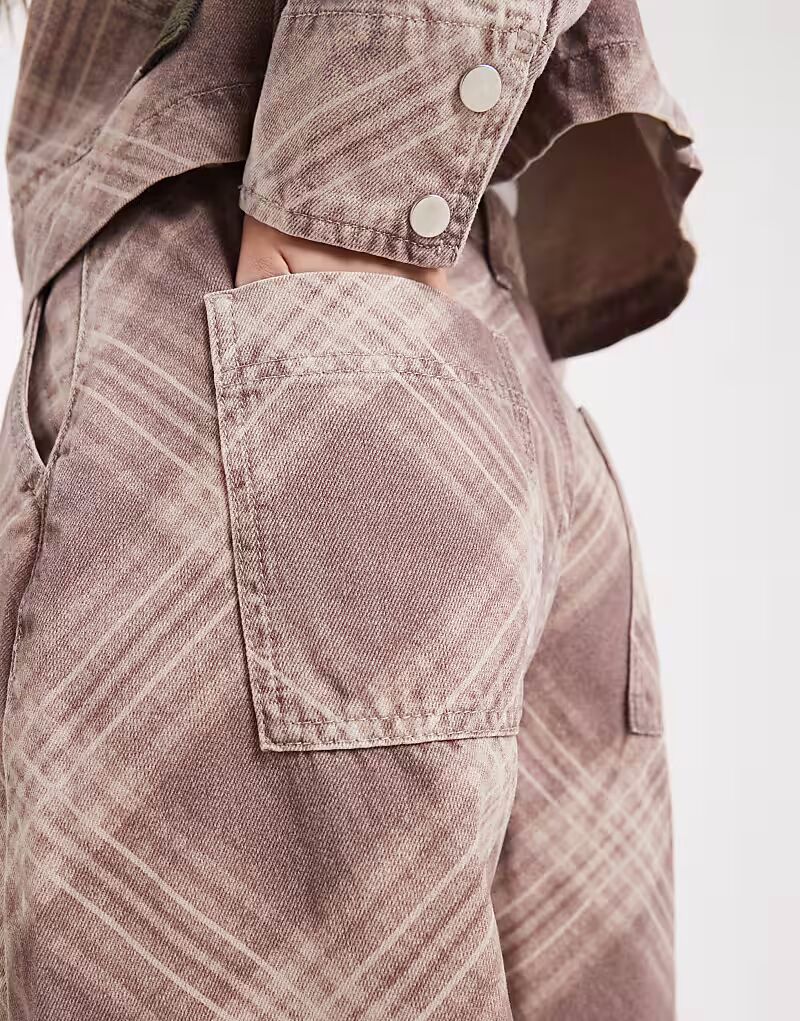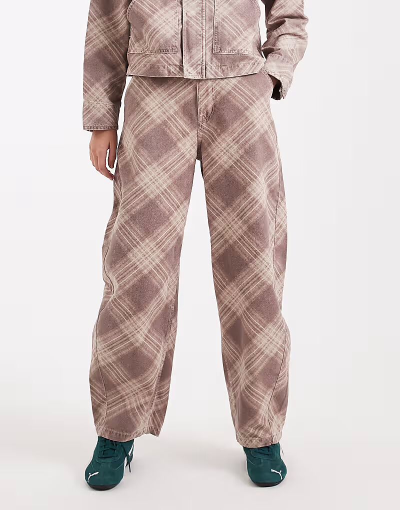 Брюки-бочонки в клетку с эффектом потертости Asos Design