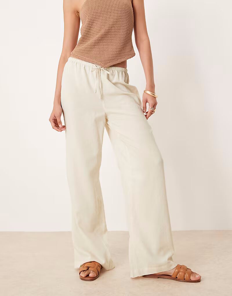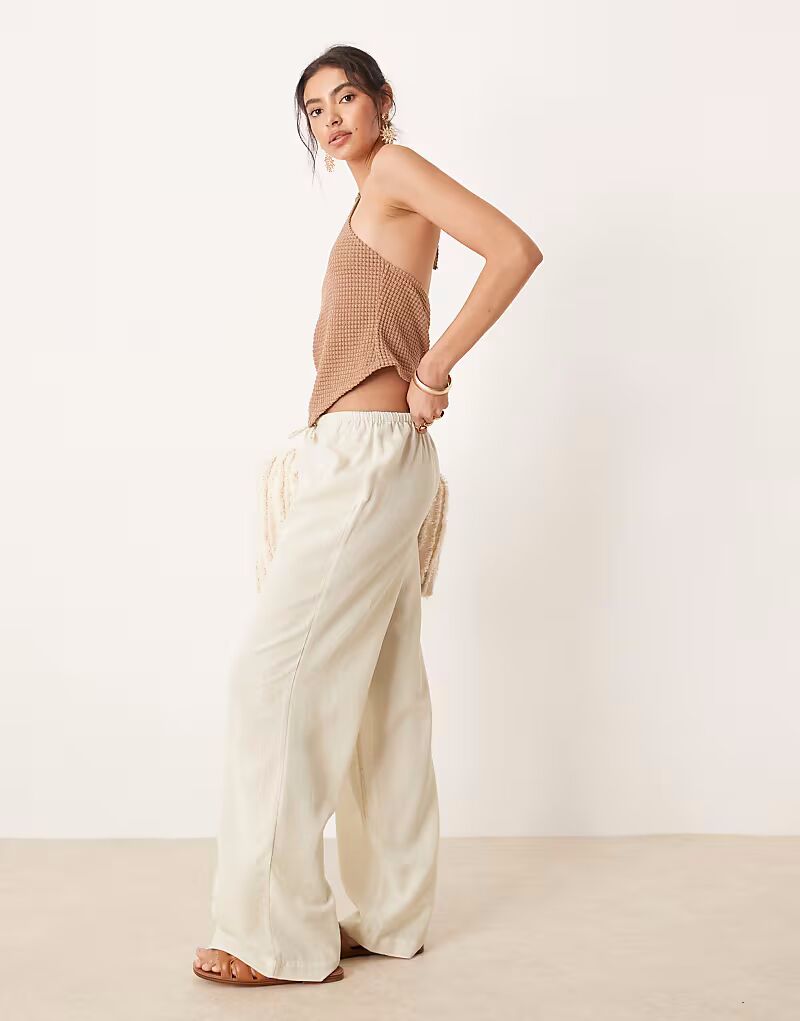 Пляжные брюки Belle со льном натурального цвета Asos Design