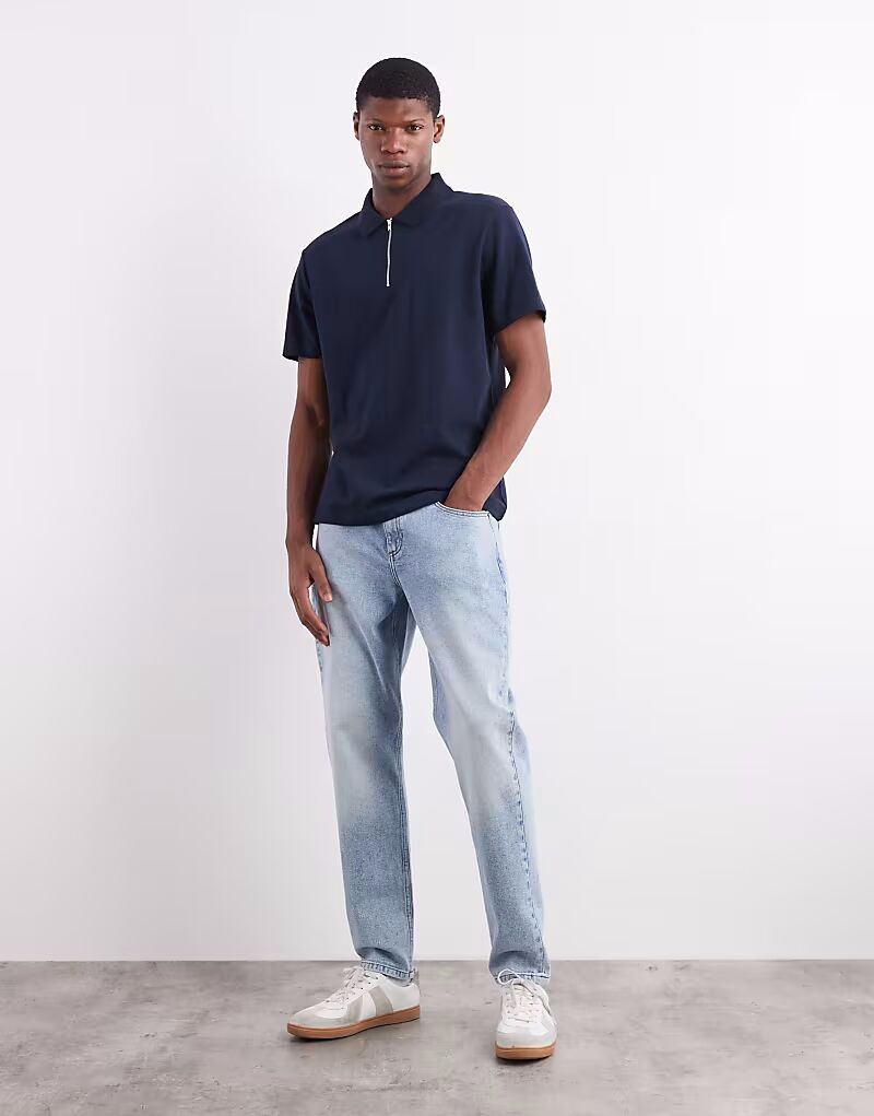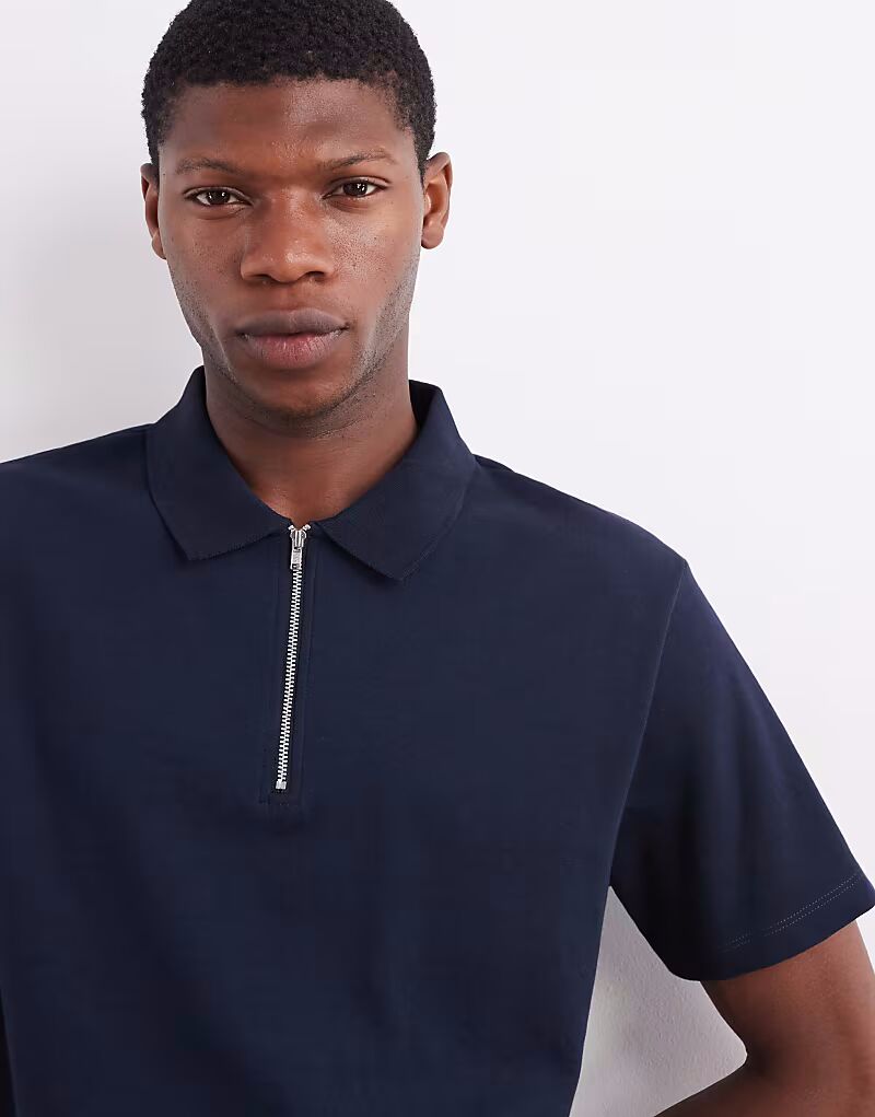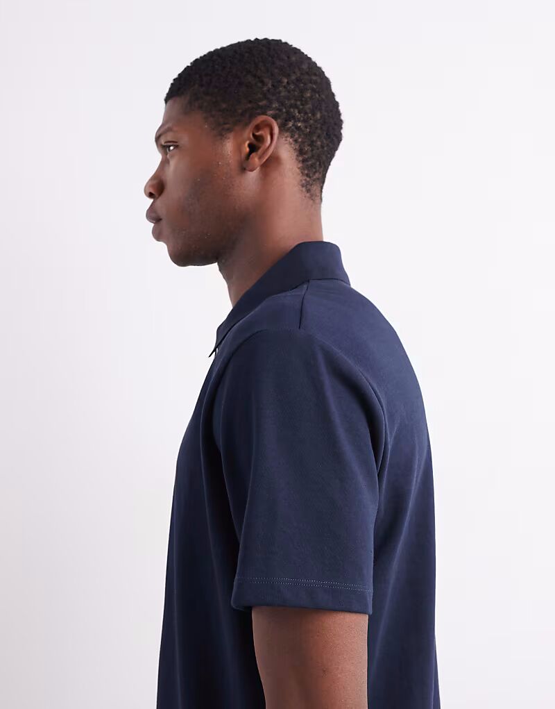 Плотная рубашка-поло на молнии breathMAX из темно-синего хлопкового микса Asos Design