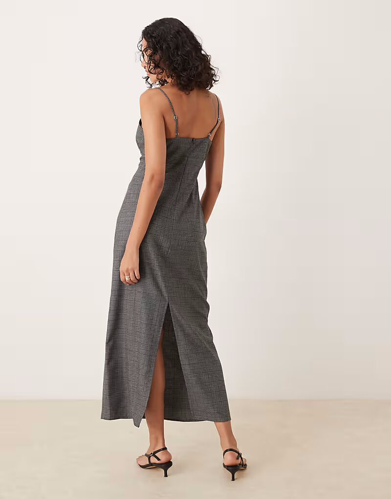 Платье-комбинация на бретелях в серую клетку Asos Design
