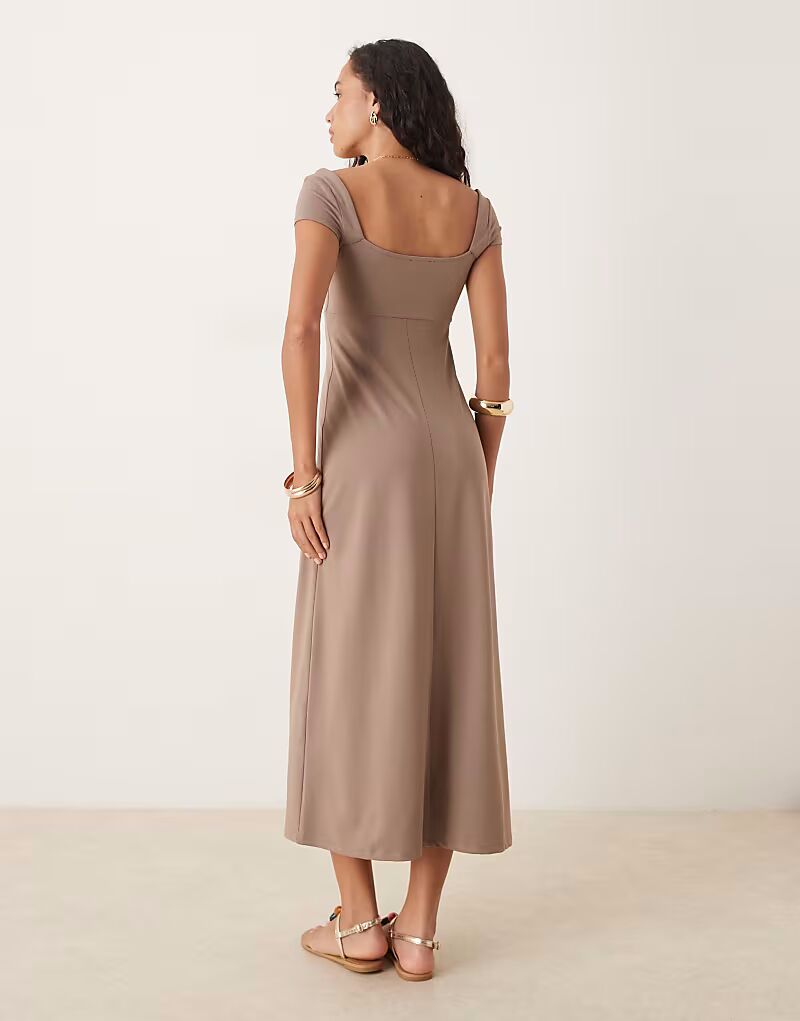 Платье миди с короткими рукавами цвета мокко Asos Design