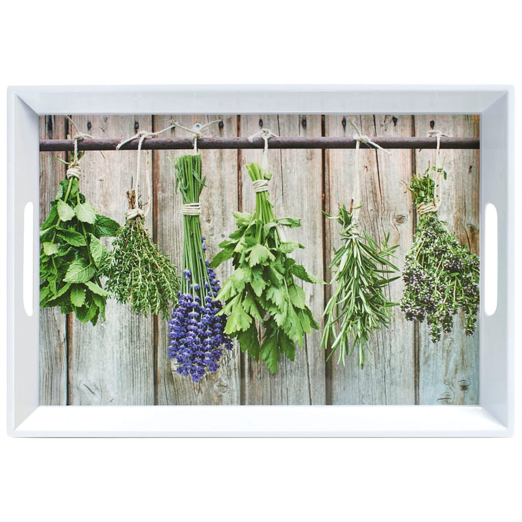 Поднос, из меламина, в дизайне "Травы", длина: примерно 50 см, ширина: примерно 35 см, с приподнятым краем