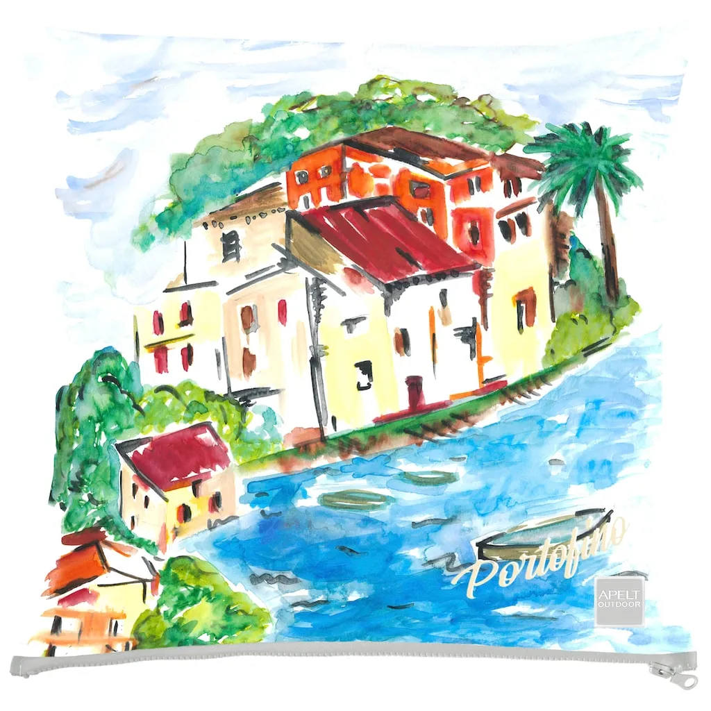 На открытом воздухе, акварельный вид Портофино, наволочка с декоративной молнией, защита от пятен, высокая светостойкость