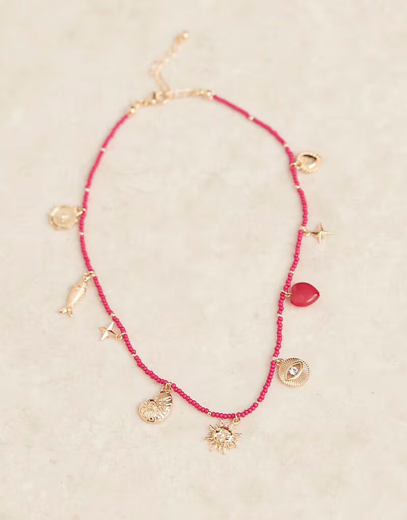 Ожерелье с подвесками с бусинами розового цвета Asos Design