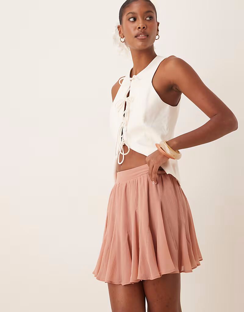 Мини-юбка годе из шифона в темно-розовом цвете Asos Design