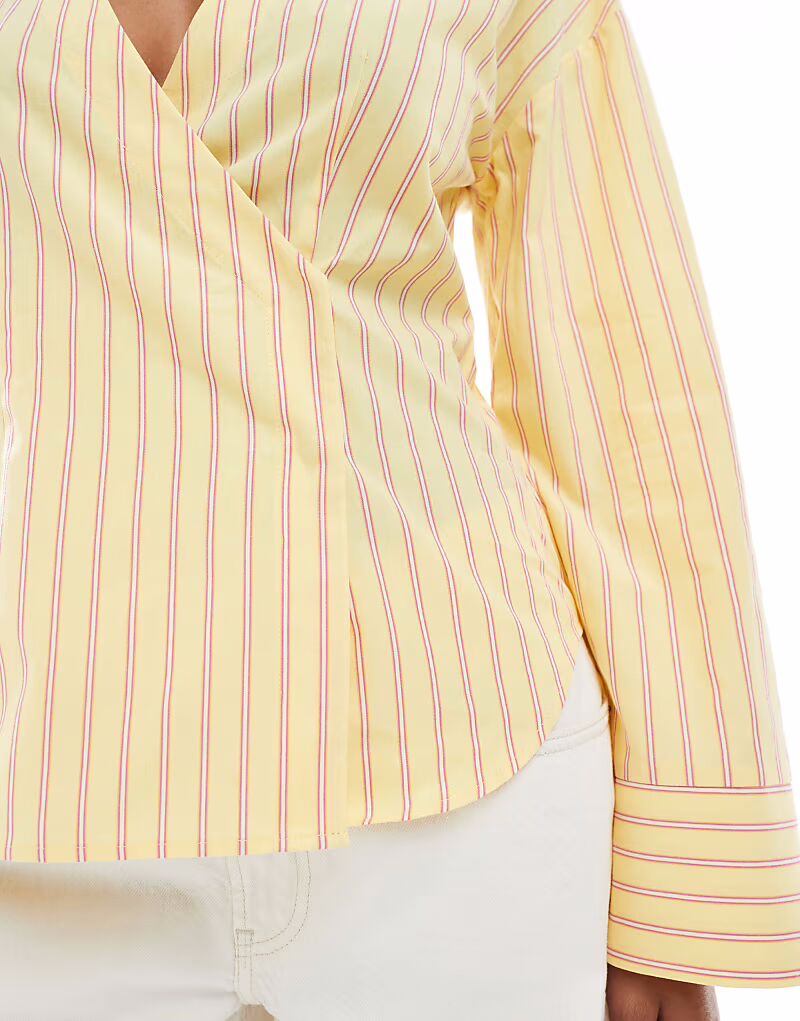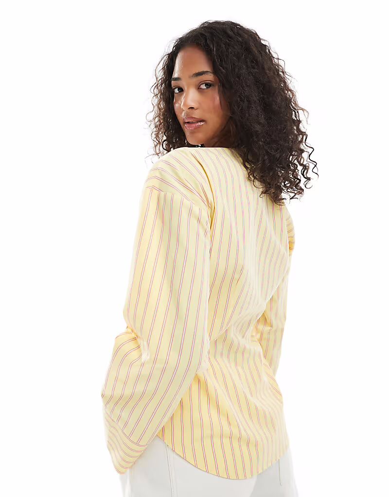 Рубашка без воротника с рукавами-коконами в полоску Asos Design