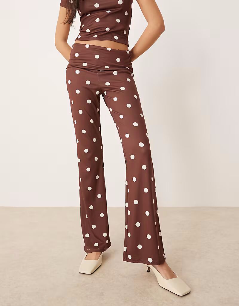 Расклешенные брюки в коричневый горошек Asos Design 3 259₽
