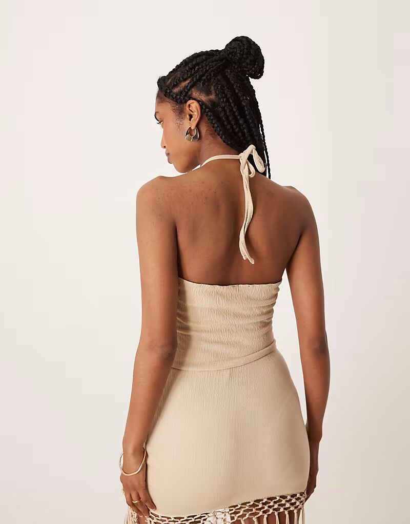 Топ-халтер с бахромой в цвете «песочный» Asos Design