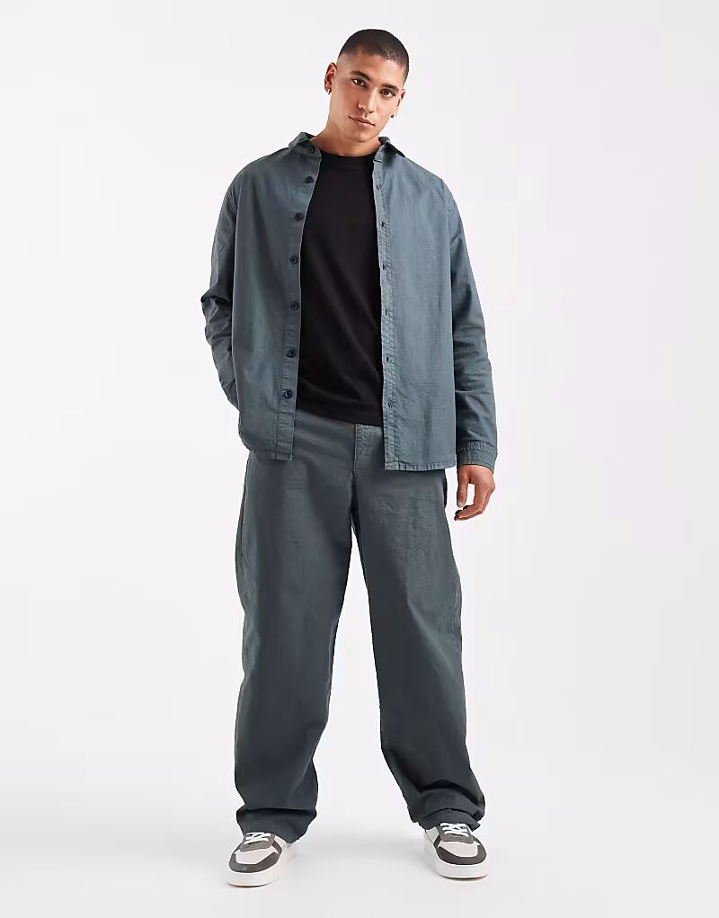Свободные прямые брюки из темно-серого рипстопа Asos Design
