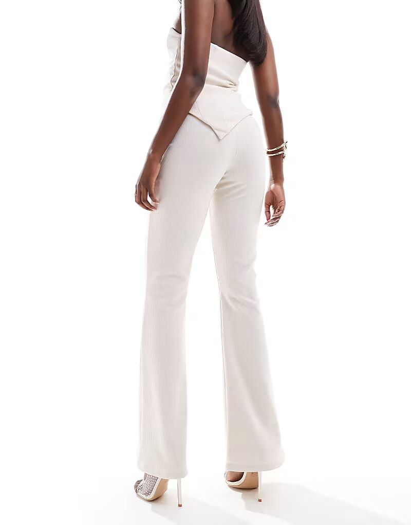Расклешенные брюки-клеш в рубчик кремового цвета Asos Design