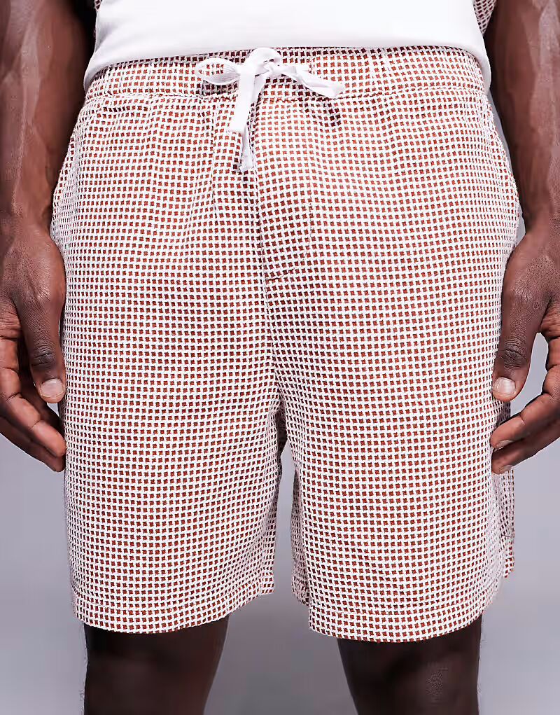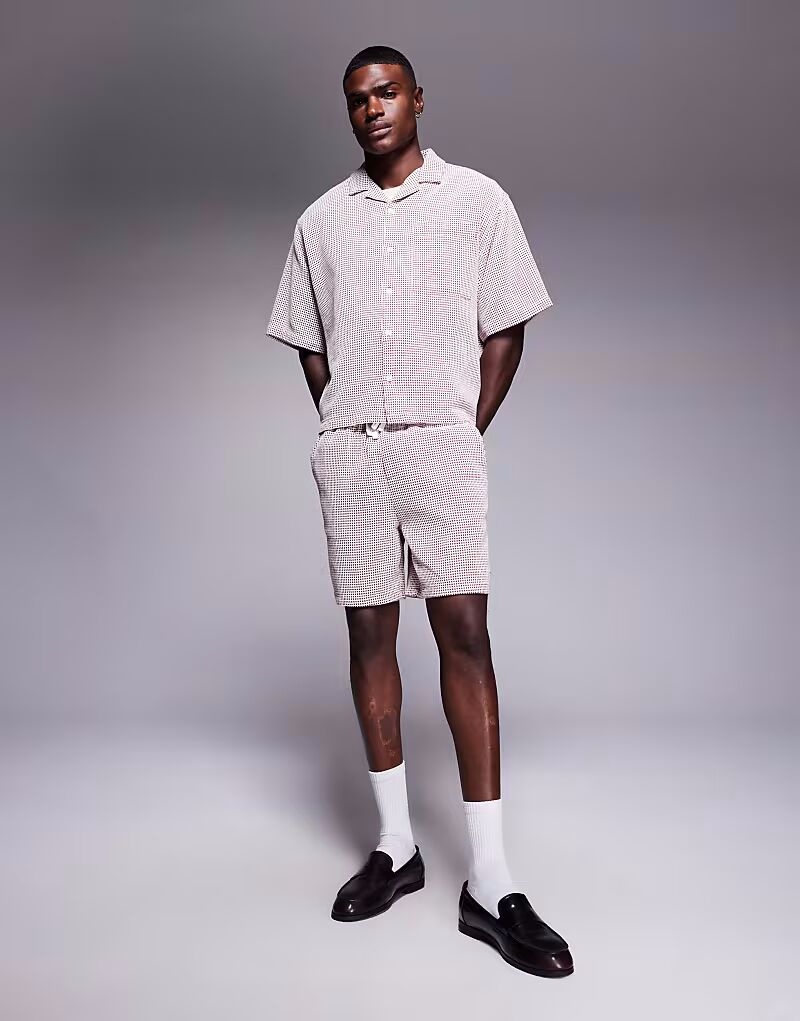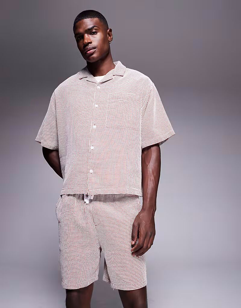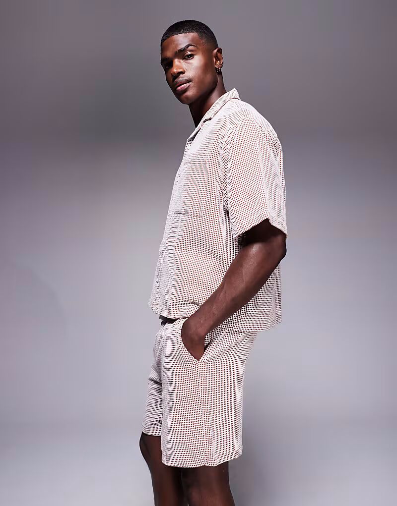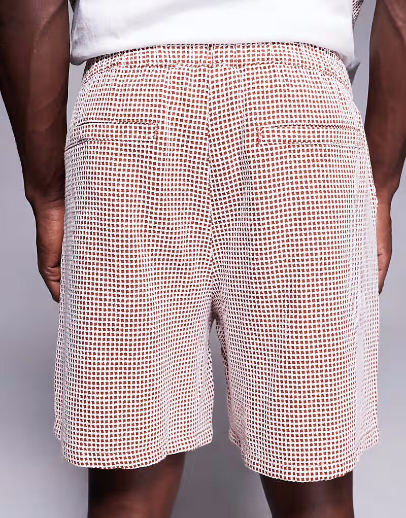 Коричневые и белые вафельные шорты средней длины Asos Design