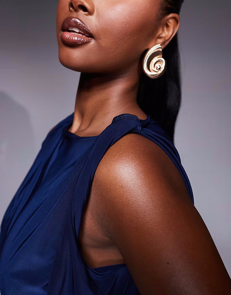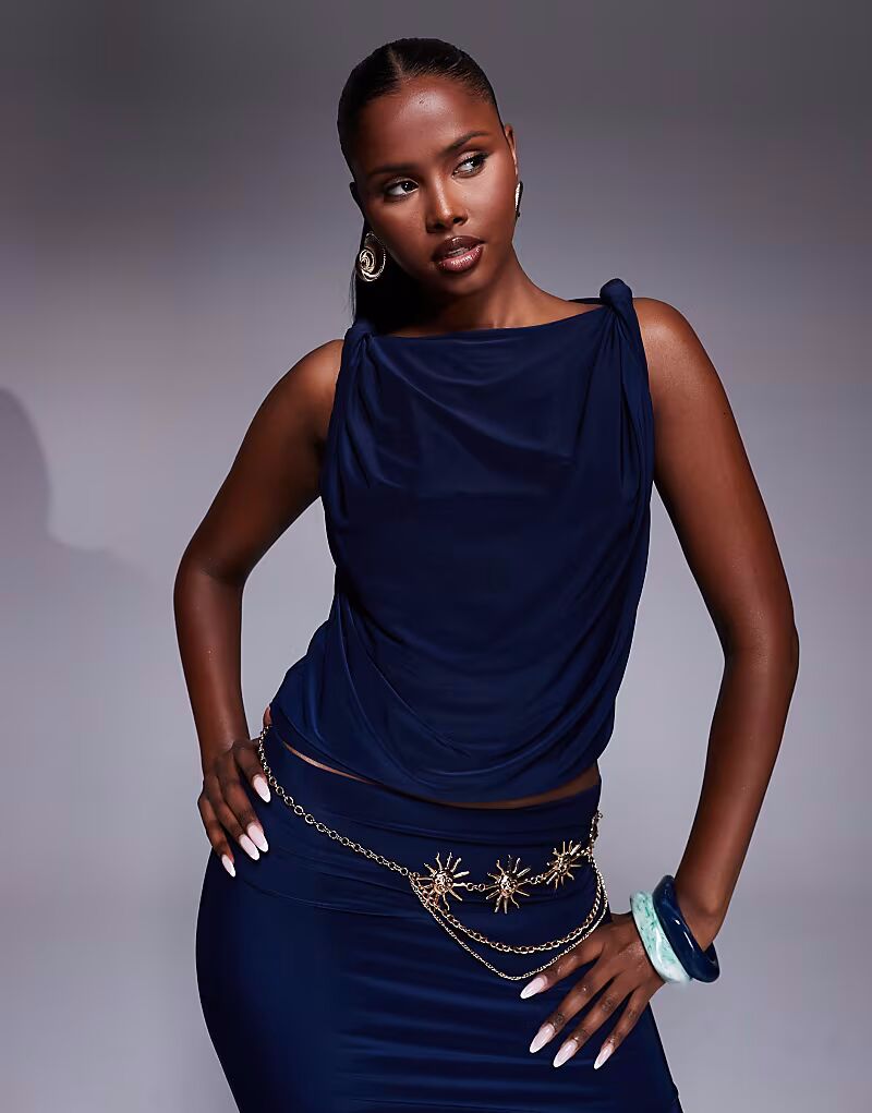 Обтягивающий топ с драпировкой в ​​темно-синем цвете Asos Design