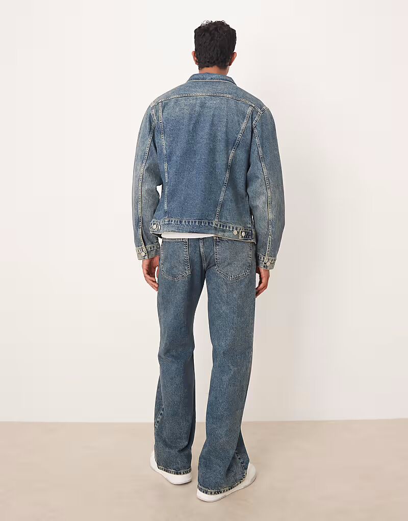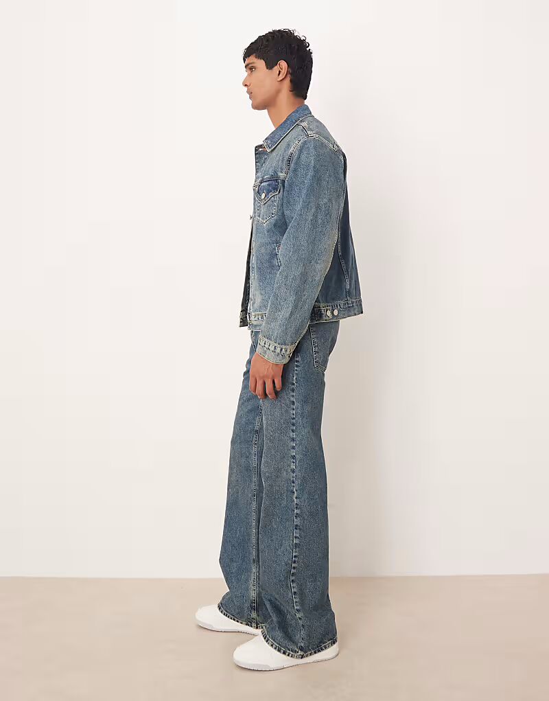 Джинсы-клеш, средне-синие с желтым оттенком Asos Design