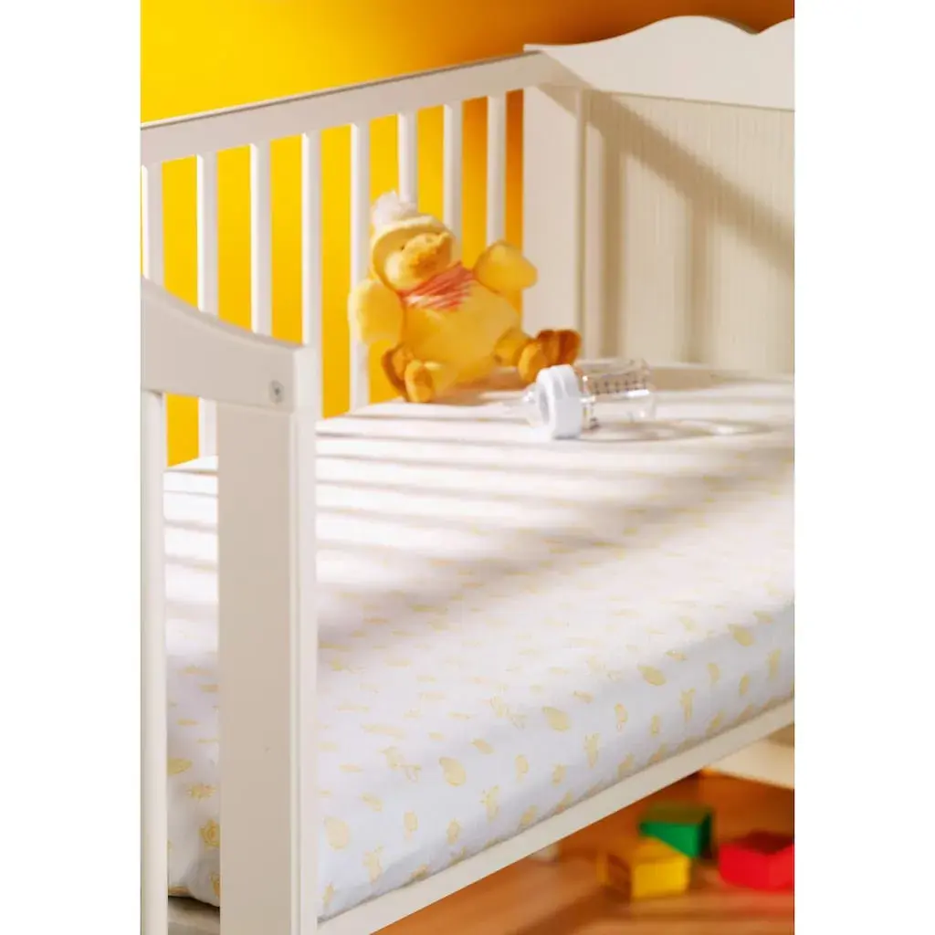 Особенности: Натяжная простыня с защитой от влаги из полиуретана. Доступна в двух вариантах: отбеленный белый или с детскими рисунками. По периметру с резинкой. Сделано в Германии. Накладка: Водонепроницаемость: Да. Наполнитель: водонепроницаемая защита от влаги из полиуретана. Чехол: 100% хлопок, плотность ткани г/м²: около 180. Инструкция по уходу: 95 °C для белого белья, 60° для цветного, подходит для сушки в сушильной машине, 1 точка глажки, не отбеливать, не хлорировать. Информация для заказа: Примечание о продукте: Накладка на матрас подходит после первой стирки. Комплектация: 1 накладка на матрас.