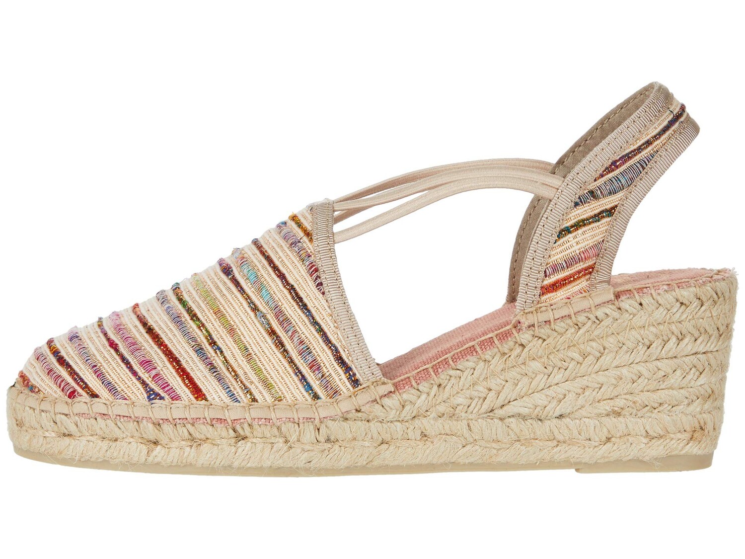 Эспадрильи на танкетке Toni Pons Tania-SN — это очаровательные слипоны, которые можно сочетать с любой одеждой для теплой погоды. Изготовлен из парусины с ярким плетением и эластичными эластичными бретелями для удобной посадки. Тканевая подкладка. Мягкая стелька. Прочная резиновая подошва. Сделано в Испании. Мерки товара были сняты для размера EU 38 (женский размер США 7,5), ширина M. Обратите внимание, что измерения могут различаться в зависимости от размера. Размеры: Высота каблука: 2 1/4 дюйма Вес: 9 унция Высота платформы: 3⁄4 дюйма