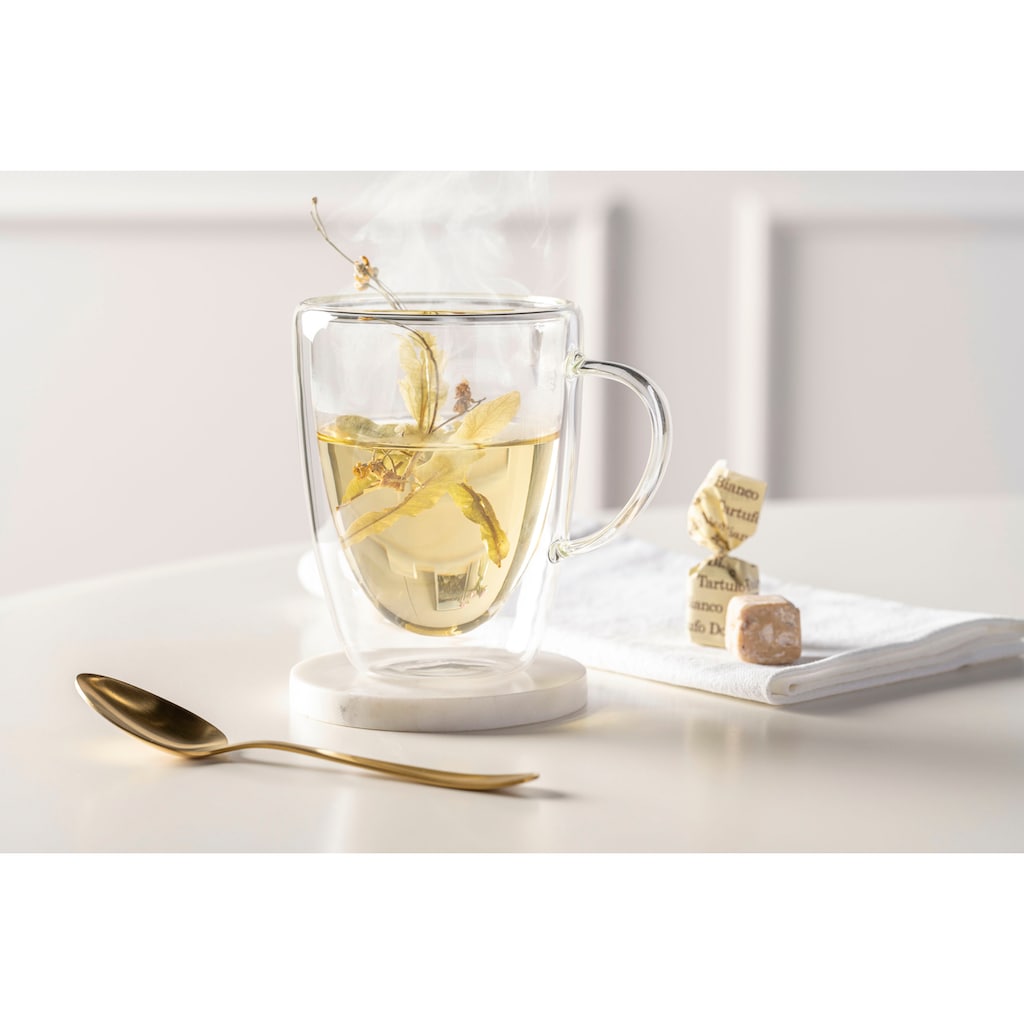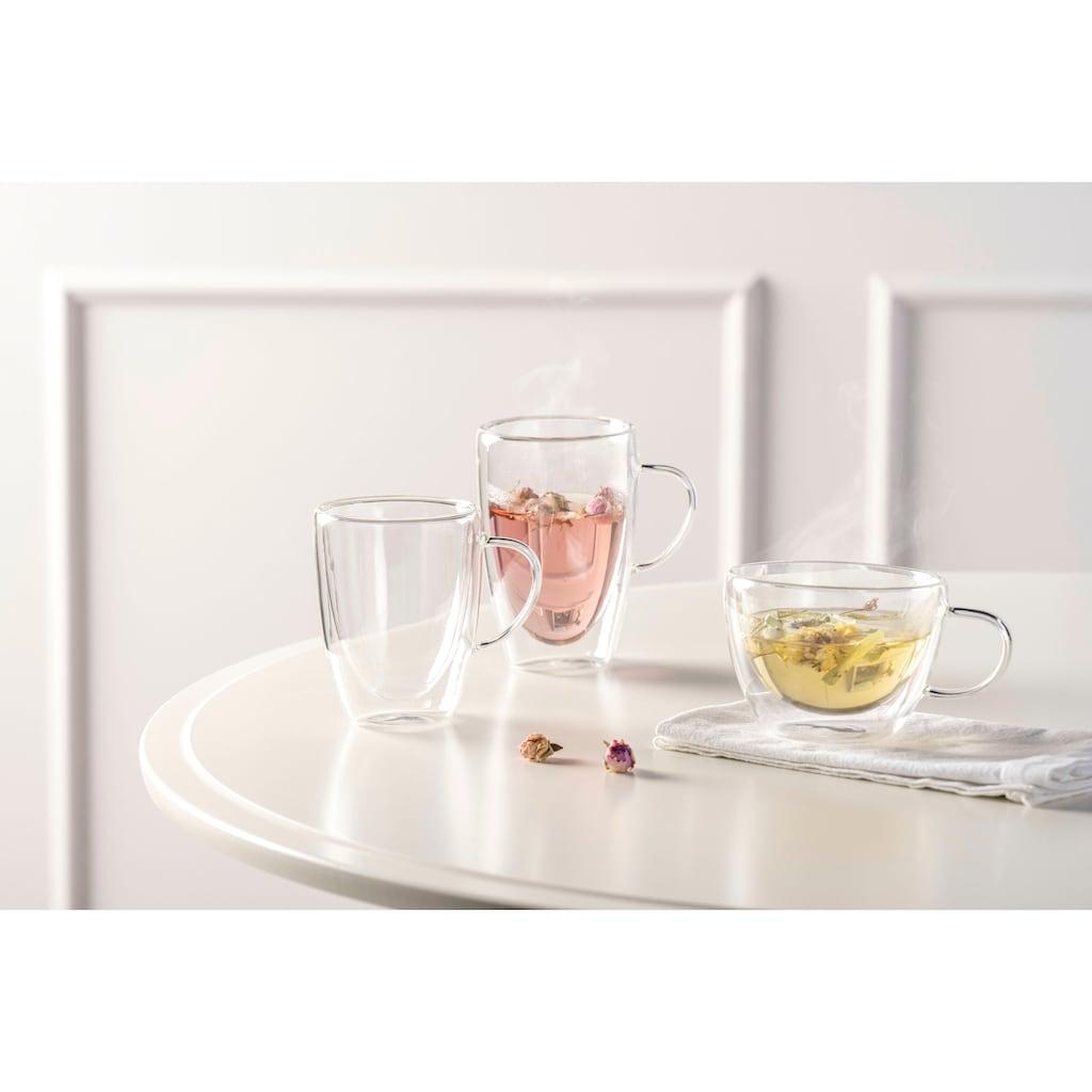 Абсолютное наслаждение. С изготовленной вручную чашкой из серии DUO вы приносите в свой дом атмосферу итальянской жизни. Двойные стенки дольше сохраняют напитки теплыми и позволяют без проблем держать чашку в руках даже с горячим содержимым. Аналогично, холодные напитки дольше остаются освежающе прохладными, даже в летнюю жару. Настоящее удовольствие. Эта мягко сформированная чашка - абсолютный must-have. Особое преимущество: устойчивый боросиликат делает продукт очень термостойким. Зачем долго раздумывать? Не ждите, просто закажите. В этот набор входят 4 одинаковые чашки.