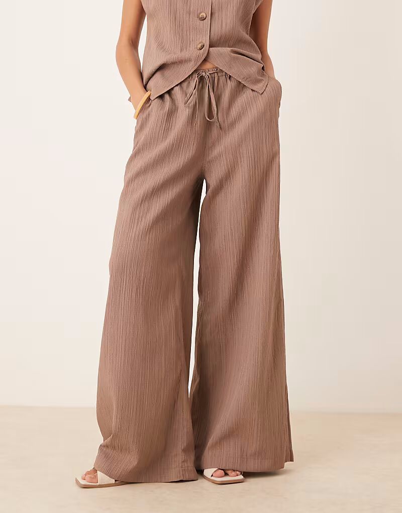 Брюки-палаццо с жатым эффектом, серо-коричневые Asos Design