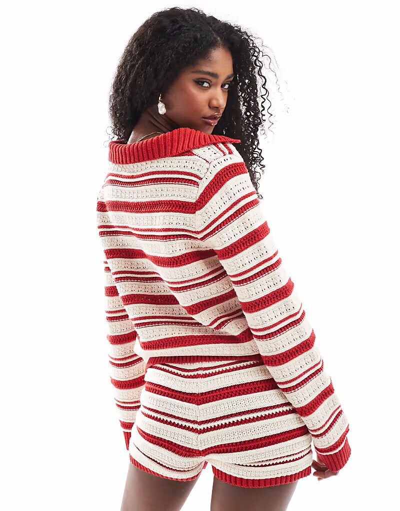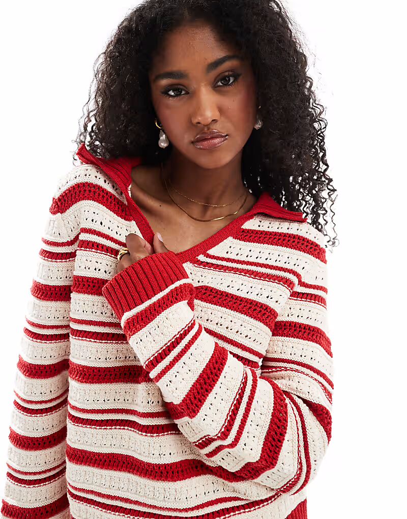 Топ-поло в стиле крючком в красную полоску Asos Design