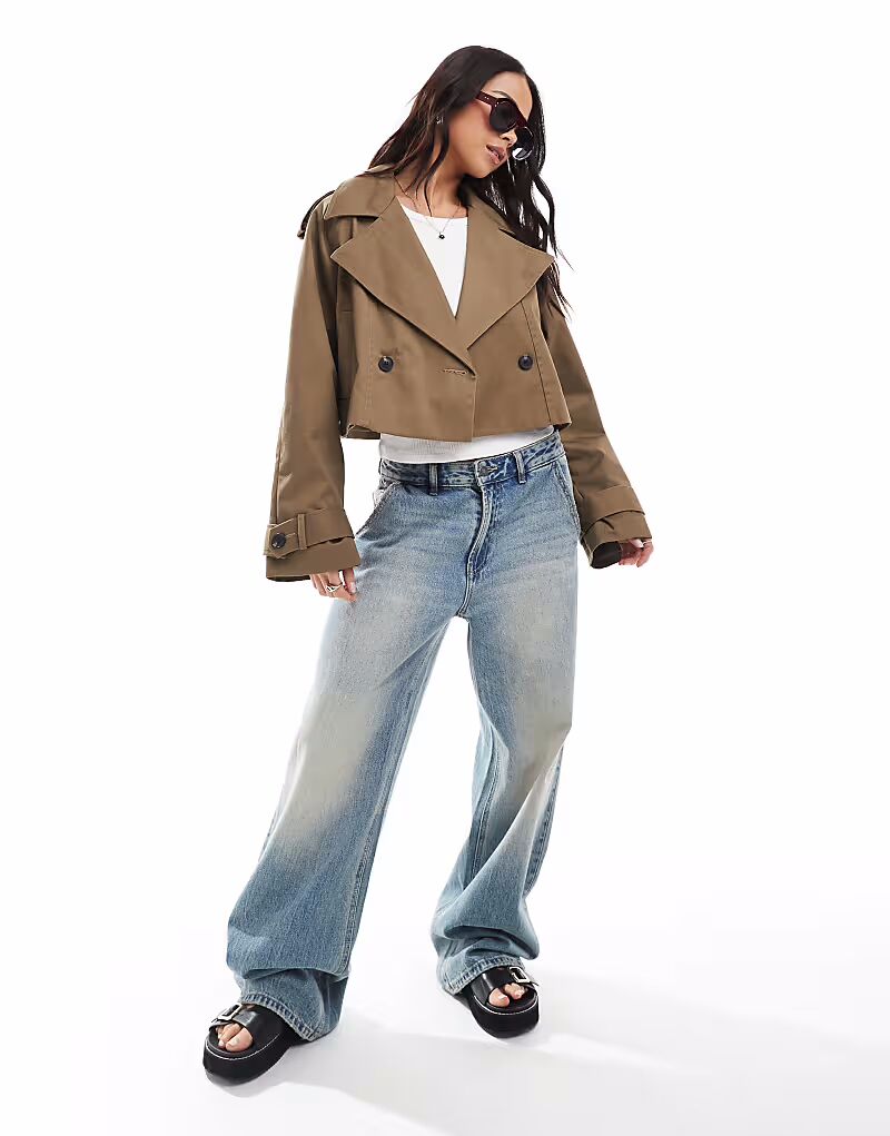 Укороченный тренчкот оливкового цвета Asos Design 7 275₽