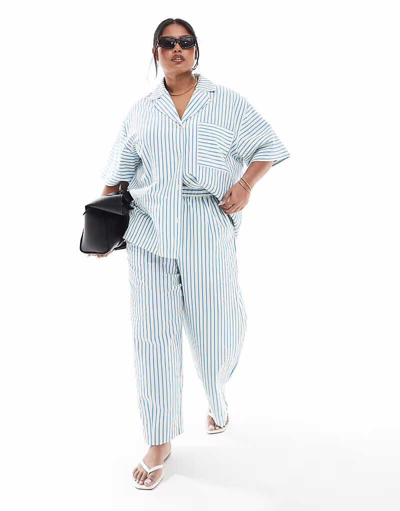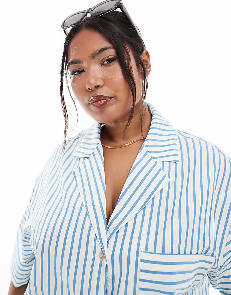 Рубашка из сирсакера Curve в синюю полоску Asos Design