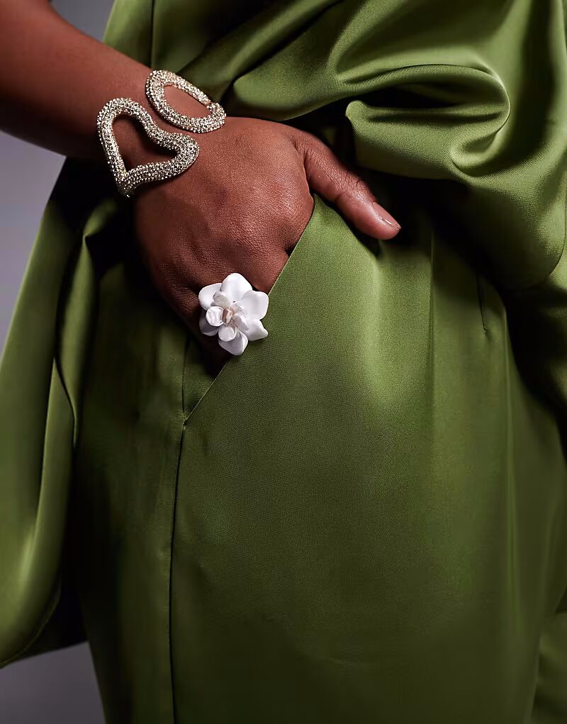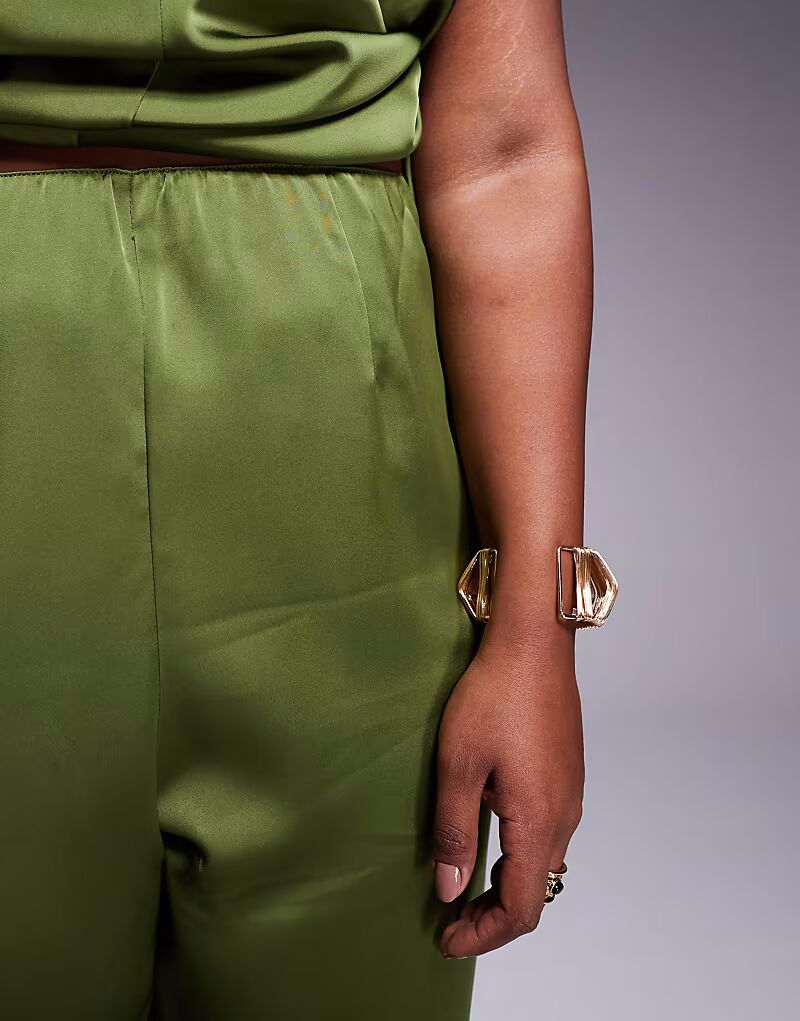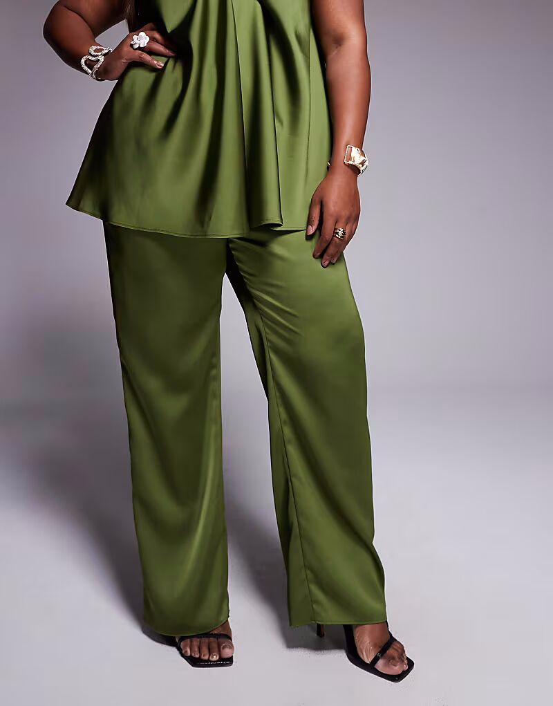 Прямые атласные брюки Curve цвета хаки Asos Design