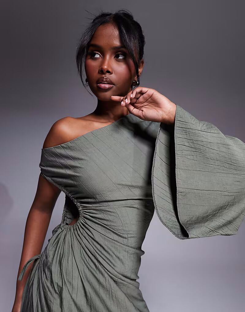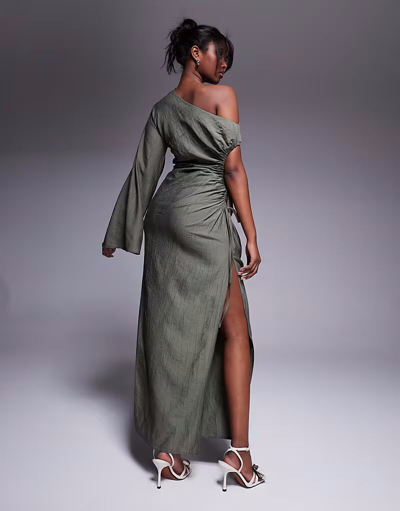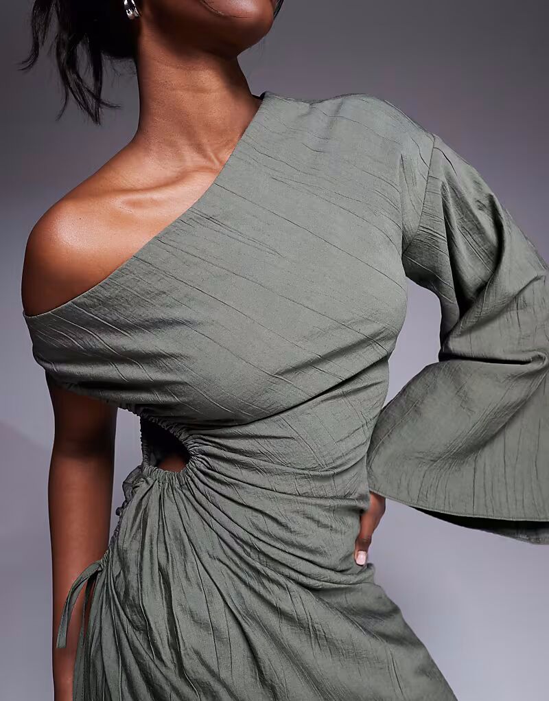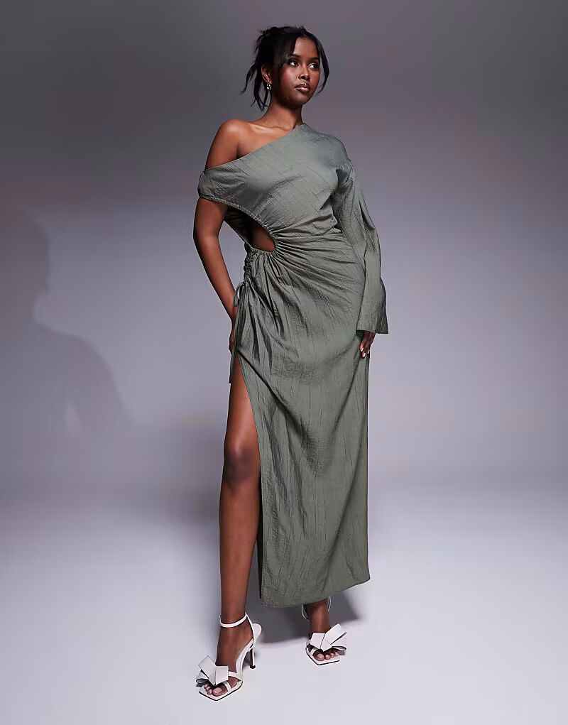 Платье макси с вырезом и лифом цвета хаки Asos Design