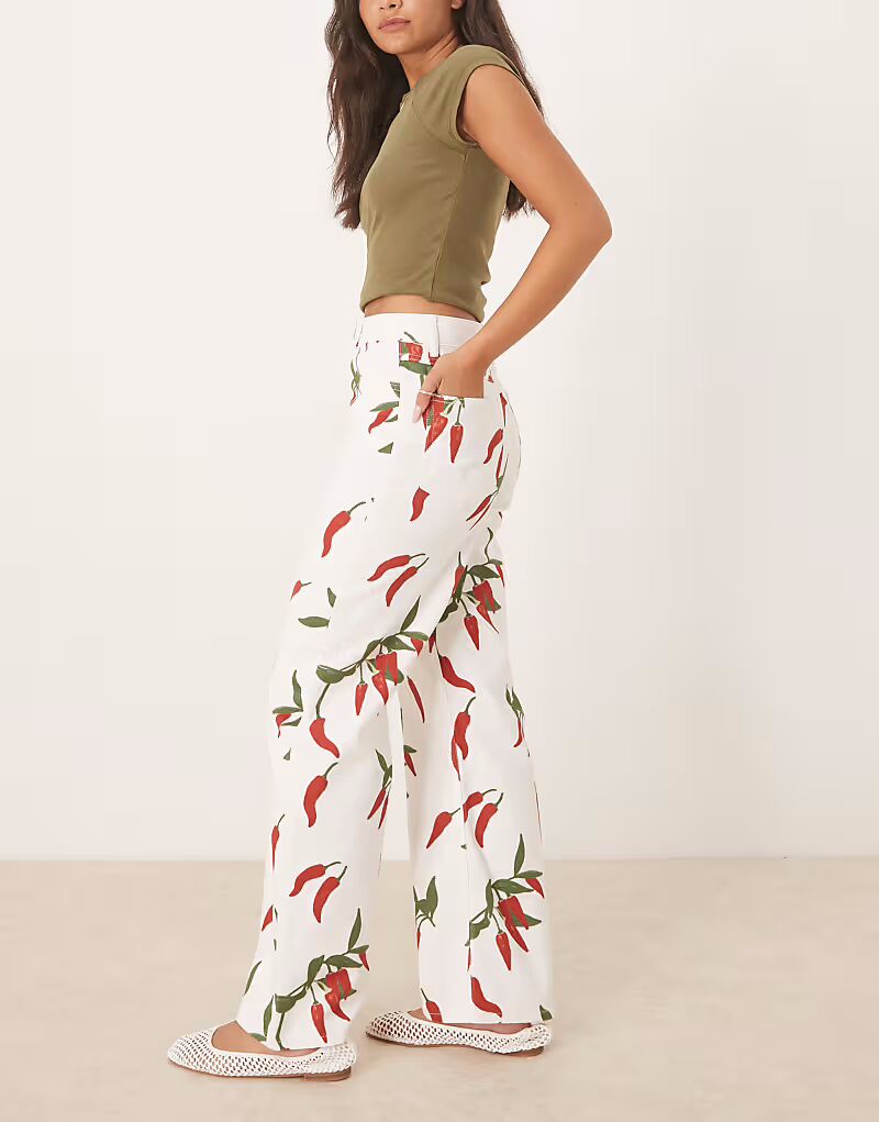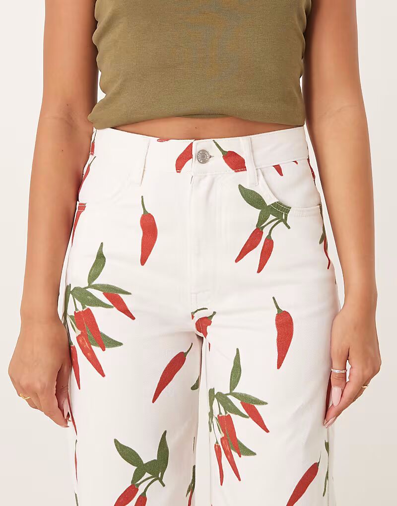 Джинсы dad с принтом перца чили цвета кремовый Asos Design